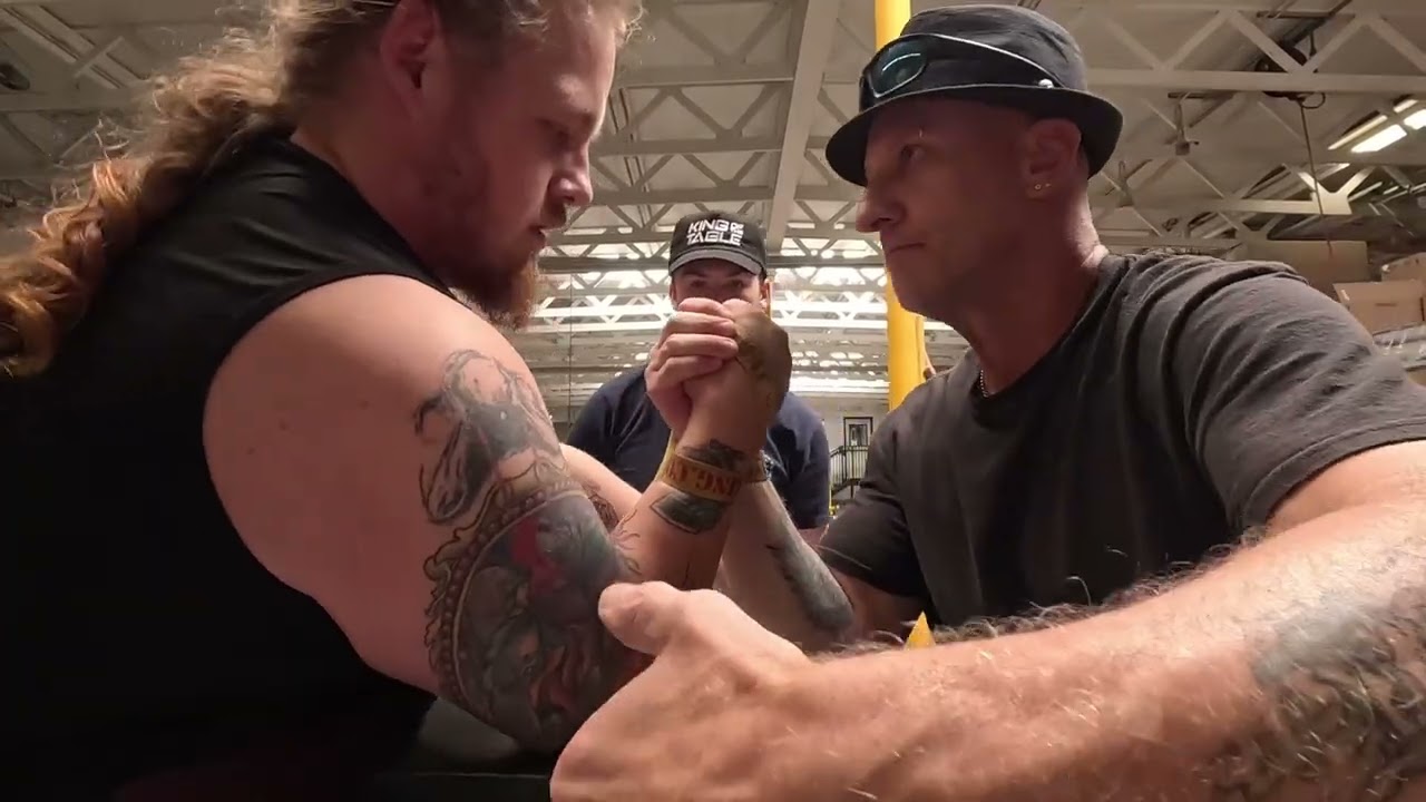 Don’t move. Ready, go. Nice line. [Music] All right, grip. Flatten the wrist. You guys got to come off the knuckles. Both you guys off the knuckles. Good. Right there. Leave it. Square up. Square up. Right here as well. Center tables this way towards Kyle. Square about right there. Wrist. Wrist. How’s that look? Really? Good. It’s looking good. Don’t move. Right there. Ready. Go. Winner. Parallel pin. That’s one zero. Keller Bear. Guys, you ready? Grip. Okay, guys. It’s got to come Kyle’s way. Right there. Shoulder. Shoulder. Shoulder. Do not move there. Wrist. How’s it? Good. Look at there. Square up. Knuckle. Knuckle down. Grip. Wrist here. Rotate. Rotate. Don’t move. Ready. Go. Stop. Stop. Stop. Two. Keller. It’s the best of five. Guys, you got one more match or maybe several. Who knows? If you guys are ready, you can take a grip, but it’s up to you. Okay, grip. Shoulder here, Keller. Shoulder there. This way. This way. Towards Kyle. Right there. Keep that distance. Wrist. Wrist. Don’t move. Ready. Go. There you go. Slip. Slip. Okay, guys. Palm to palm. Hands open. Ruly. Grab him here. Yep. Okay, guys. Just make this easy for me. Close your thumbs if you guys need. Don’t move too much. Higher or low. Hey, how you doing? One more time. Right there. Good. Good. High or low. Good there. Yeah. Do not move, guys. Just make this easy. Grip. You guys comfortable with that strap tightness? Okay, guys. Look pretty good there. Just a little shoulder. Wrist. Wrist. Don’t move. Knuckles come down right there. Wrist again. Wrist. Don’t move. Ready? Go. Oh, nice. Stop. Stop. Stop. Stop. Elbow foul. Elbow foul. Right here. That’s fine. Keep the strap on. You guys fine with that? Yep. Okay. Grip. Maybe tighten it a little bit. You fine with that, Kyle? Came a little loose. Good grip. Square just a little square up here. Little on the wrist. Keep the knuckles there, guys. Wrist. Wrist. Don’t move. Ready. Go. Nice. Stop. Stop. Keller Bear. 3-0. Good job, guys. Good match. Okay, so Keller keeps his spot.