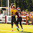 Gordon jumps over mascot