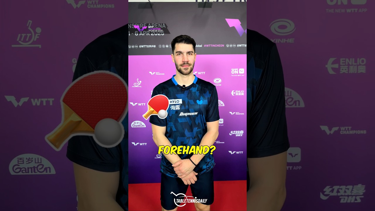 Okay, Patrick, we’re going to build your perfect WTT player. So, first off, forehand, like everyone says, Malong backhand um fun serves definitely linu mental game. Um Harimoto personality uh go with [Music] feeling [Music] power. Um between Dimma and Hugo I would say I I go for Hugo. And lastly celebration I take. Thanks Patrick. Thank you.