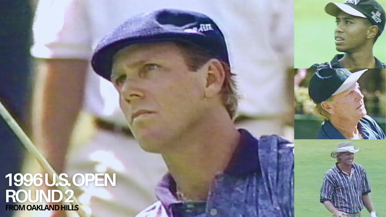 [Music] There were winds of change yesterday as the pursuit of the 96 US Open title began at Oakland Hills. Tom Watson’s magical run continued. It appeared Tiger Woods would make his first run of the major championship, but an open can turn so quickly on a 20-year-old. Jumbo Wazaki has plenty of experience, but can he rally himself three more days? Paul Azinger’s experience outside the ropes has toughened him for moments like this. Moments that produce US Open champions. Lee Jansen poised to make a run at his second title in three years while Payne Stewart looks for an open bookend to the one he captured 5 years ago. Round two begins today. Who will play the weekend? Who will position themselves for a chance to win golf’s greatest championship? ESPN and the United States Golf Association are proud to present second round coverage of the 96th US Open Championship. A glorious Friday at Oakland Hills, less than 20 m northwest of Detroit. And after some early weather worries, the forecast for the rest of this championship looks to be just about perfect. And the monster may have been soft yesterday after recent rains, but three under was the best anyone fared. Mix in some sunshine and soft breezes today, and the treacherous greens at this masterful Donald Ross Par 70 layout should become more challenging by the hour. [Music] The first group went off four hours ago and that included Billy Andre, one of the hottest golfers on the course this morning. Here is T-shot at the par 313. 168 yds. Andre nearly aces it. He’d have to settle for par. Had some late bogeies, so he’s one under for the day. Tiger Woods had his problems finishing up yesterday. In fact, he led this championship. tied for the lead at one point yesterday here at the par 48. Curling in a birdie. That was his third of the day, but he’s just bogeied and he is plus one on the day. This was the scene a moment ago at the par 39th. Greg Norman. You hold that camera there, please. That’s why you got me. Norman, disturbed by the clicking shutter of a photographer by the ropes, pulls his T-shot well left of this whole location. Don’t you go shaking your head at me. Yeah, you always apologize after the fact, don’t you? But Norman calmed himself and saved far from that point. Began the day at plus three, one under on his round today. The Shark plus two for the championship. John Daly had a hard time getting his putting blade going yesterday. But here for birdie at 10, was able to get it to roll in. John Daly even for the day plus two for the championship. He also has three bogeies. Michigan native John Morris continuing his stellar play from yesterday. Shot a 68 in the first round. Hard the first hole and then here at the par five second rolls in a birdie. He began the day a shot off the lead at two under but with that birdie has tied Payne Stewart and Woody Austin for the open lead at three under par. Lee Jansen who won at Baldis Roll in 93 begins the day at minus 2 after his opening round 68. Paul Azinger continues to be a story. One under through seven. Jumbo had early problems on the first hole and he has fallen back. Colin McGomery even for the championship along with Tom Watson who opened up with an even round 70 yesterday. As you see Billy Andre falling back a bit after his early success here. Davis Love the third playing the course plus one through 13. the lone tower announcer. And then on the fairways, Gary Ko will be following that threesome of Daily Woods and Paven. And John Schroeder will be alongside Paul Azinger, Barry Lane, and Curtis Strange. And we’ll bring you out to the par 31 13th. And it’s 175 yds today. John Daly has found the green. And this birdie attempt. from well below the hole in the front of the green. Good pace though. Very acceptable from there. John Daly up and down round. Three bogeies to go along with three birdies. The last which you saw at 10. So he is plus two and very much alive in the hunt for this championship. As we move you back to the par 4 eighth. Paul Azinger second shot. John Schroeder bring us up today. Well Paul Azinger is playing very very nicely today. He hasn’t made a bogey so far in his round. Uh put the ball about 2 in outside of the fairway. So he’s in that first short cut of rough. Has 186 yds to this elevated green par4. Pence cut 15 yds deep and only seven from the right hand edge. And there’s a big mound in the middle of this green. So he wants to keep the ball if possible on the right side of this green to give himself a reasonable putt. And Roger, it sets up very nicely for the way Paul plays with that little hold shot he hits. probably hitting a sixiron. He can move it in left to right and use that mound to the left of the hole to bring it to the flag. It’s a little right of the flag in the air. Oh, know whether he mis hit it or misjudged the wind. Not a bad shot though. Underneath the hole here is okay. Back to 13. Cory Paven. Gary Ko with his threesome. Long birdie putt out of the low area at the front of the green. very similar to the one John Daly had. And back to 12, we pick up uh Greg Norman. Third shot. [Music] I think you could call this whole location tucked right behind the bunker. Excellent shot by Greg Norman. Went out in one under. Two birdies, one bogey, and a hit to 13. and Tiger Woods. Uh Gary, have you had a chance to get a feel for how Tigers playing today after the late disappointment yesterday? Dan, uh he’s shown remarkable composure today. Played pretty solidly. Just hasn’t made many putts. I know it’s a little early on to start thinking about it, but at plus 7 right now, he needs to probably make a birdie or two to have a chance to make the cut. It’s a nice iron shot in here about 15 ft to the right of the hole. This is the difficulty of Oakland Hills. Even though he’s on the proper level of the green, he’s still going to have a huge break from right to left. [Music] Well, yesterday in Tiger Woods round of 76, he went 