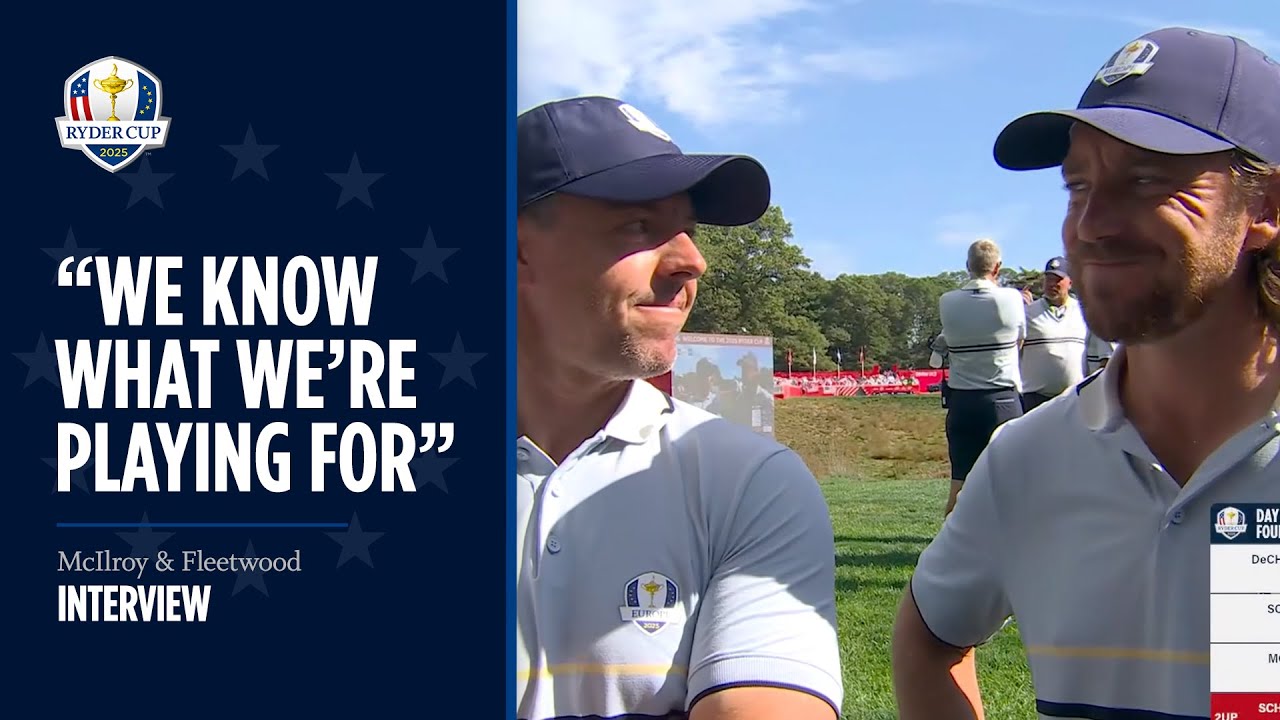 that of Rory Maroy and Tommy Fleetwood. Guys, many many congratulations. Rory, a five and four victory. Fleetwood Mack, three forsomes in Radic Cup, three wins. What makes this team just unbeatable? Uh, I think when you’ve got a partner like Tommy, um, you can play with so much freedom and so much trust in your game because you know you have someone that’s going to back you up. Um, that’s how I felt, you know, the two times we played in Rome and then today. You know, force can be a tough format. Um, you can start, you know, you can play a little tentative with the way the format is, but again, knowing I have this man beside me to bail me out if I do hit a bad shot, um, that’s that’s very comforting to know. Tommy, the home team has won the last five RDER Cups by five points or more, but you guys came in here with real confidence and belief that you could do this. What is fueling that belief? Well, there’s a lot of things fueling that belief, but um, you know, I I think as a team um, there’s a lot of continuity there. Um but yeah, we have a lot of motivation. We have a lot of belief. We know what we’re playing for. Um but you know, one step at a time. I think uh we’re all we’ve all enjoyed the process of this Rder Cup so much and uh we’ve all been so excited to play um even knowing how difficult it might be. But um like I say, one step at a time and we’ll just keep going all together and we’ll see where we get to. Many, many congratulations. Great playing, guys. To watch another RDER Cup video, click here and subscribe here.