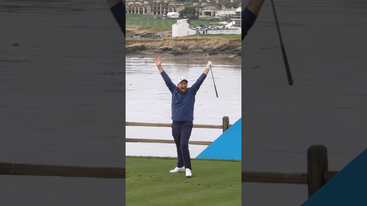 on the tea here at the famous bar of three and at Pebble Beach the seventh an ace life complete 15 spy glass 119 112 down the hill that’s not a good line about that unbelievable in the hole flies it in. Rory Maroy Oberg ready with a pitching wedge and three bring it right back and in Ludvig just a majestic pose. Good contact. Oh man, who’s going to blink? These guys are throwing darts. [Music] Yep. First birdie in the third playoff pole. This is uphill in the beginning. It goes down through a valley in the middle of the green. Oh, he pitched it right into the valley. Now up a slope. Oh, there we go. Seeing some good action here at 15. drawn a nice line. Bit of grass against him, but loads of acres of space of green to work with. Go on. That is how you come back to make a birdie. Seth Straa. As we take a look at Havland, his third here at the 12th. Wow, that was a nice shot to the hole they call the rink. Built like a hockey arena on a golf course. Still waiting for our first hole in one. Oh. Oh my word. Bob McIntyre down meired in that bunker at the par 3 11th. Get in there. How about that? How about his week last week? He’s coming off a pretty good week, too, isn’t he? There’s a little left hand low grip there on the chipping. There we go. Oh, look at this. Didn’t even hit the flag stick till it hit the bottom of the hole.