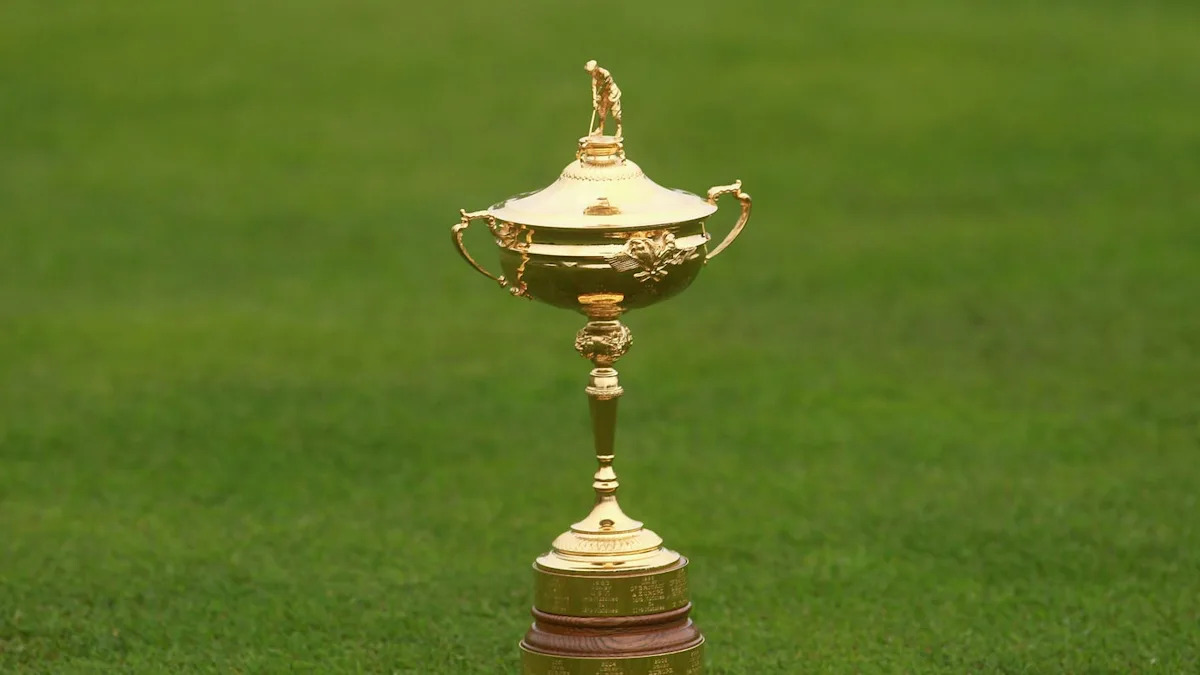 The Ryder Cup trophy is seen at the Bethpage Black Course in 2025. Gary Kellner – Getty Images