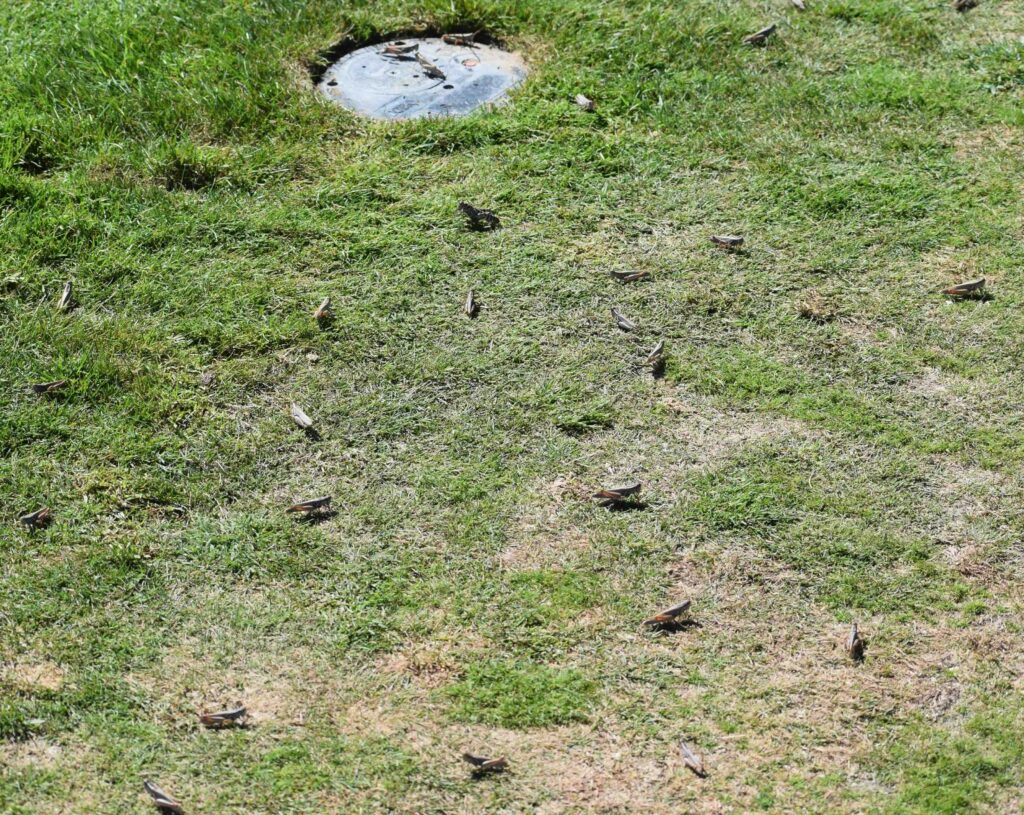 At least this time of year, there was no shortage of grasshoppers on the Rodeo Dunes property.