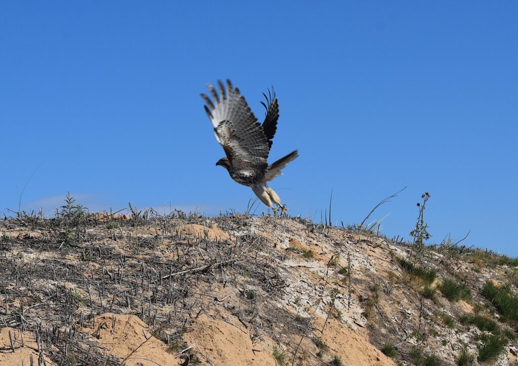 A hawk takes flight at Rodeo Dunes on Tuesday.
