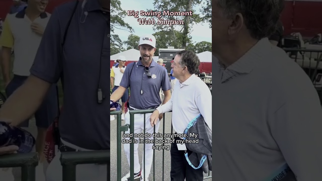 here with vice captain Webb Simpson. What was your big swing moment in life? So, when the uh the anchor putter band was coming, I realized I got to make a change. And uh I had a couple of really really hard years on tour, pretty much my my professional slump. Uh but my dad, since I was a little boy, he taught me the game. He taught me no matter what I can never quit, never give up. I said, “Dad, good. If I turn and I shoot 50 on the front, like can I withdraw if I’m in a tournament?” because I don’t care if you shoot 60 like you finish the round. And so those days where I want to throw in the towel and come back and retire and not do this anymore, my dad’s in the back of the bed saying, “Don’t quit. Don’t quit.” And so I figured it out. And if you had told me, you know, in those low moments uh where I thought my career was over, that you know, in a few months I would win the players championship, I would have said, “You’re crazy.” And so I literally I I attribute that wit of the players to my dad tell me not to split, not to give