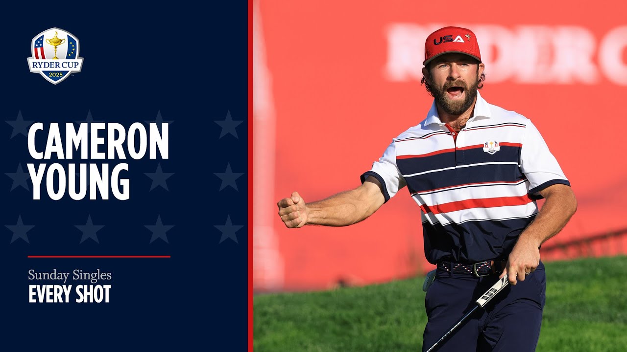 Every shot from Cameron Young caught on broadcast in his Sunday singles match at the 2025 Ryder Cup held at Bethpage Black.