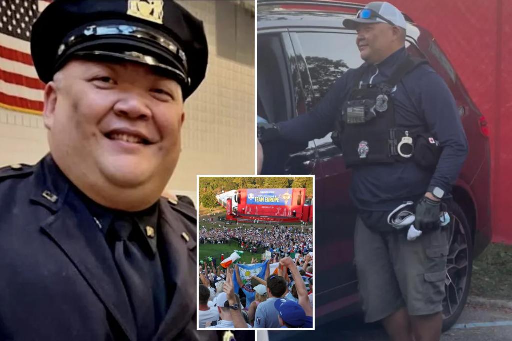 An NYPD detective allegedly showed up at the Ryder Cup golf tournament in full gear and claimed he was working with event security — while out on sick leave, The Post has learned.
