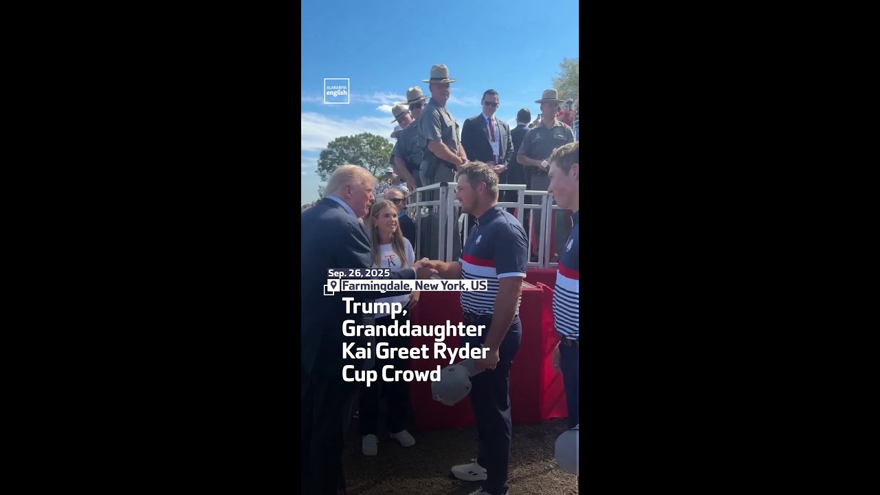 Trump, Granddaughter Kai Greet Ryder Cup Crowd US President Donald Trump and granddaughter Kai Trump greet fans and Team USA players on opening day of the Ryder Cup in Farmingdale, New York. #Trump #KaiTrump #RyderCup KaiKai Madison Trumpkai trumpKaiMadisonTrumpKaiTrumpMadisonRyderCuptrumpRelated Posts Taylor Swift & Donald Trump’s Granddaughter Could Become Future Competitors, Says Source October 7, 2025 Kai Trump’s endorsements have made her a teenage millionaire October 7, 2025 ‘The View’ Promotes ‘Latino Face’ Painting at Super Bowl October 6, 2025 Donald Trump’s sweet exchange with granddaughter Kai as they bond over sports October 6, 2025 Trump attends Ryder Cup to boost U.S. team on first day of matches with Europe October 6, 2025 New Trump logo torn to shreds by ferocious Travis Kelce fans October 6, 2025 4 Comments @adriaanvangennep8998 1 week ago Natural beauty. 😍 @VICTOROUMA-g1y 1 week ago Hello,receive greetings overseas @bryanbrookes6366 1 week ago That wil be one of his Jewish grandchildren @corruptworld1431 1 week ago Such a shame USA need bullet proof glass to protect their president…. I don't think many other countries need it.Write A CommentYou must be logged in to post a comment.