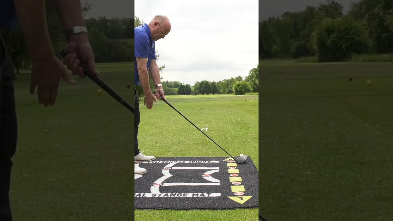 So here I am using my radial stance mat and I’ve clipped a little white rod to my driver. So when I aim the club face, if the shaft is dead right angle the target line, the white stick on the shaft should be parallel to that. And there’s the ball just inside my left heel. Now to draw the ball, I just ground the circle to my left. The club face is now opened. So from that place I can now load and hit you a draw. Because the shaft was over the ball, the ball started down the right. And because I released the hands freely, it came back with draw spin. So there we have it. It’s more important to aim the shaft than it is to aim the face.