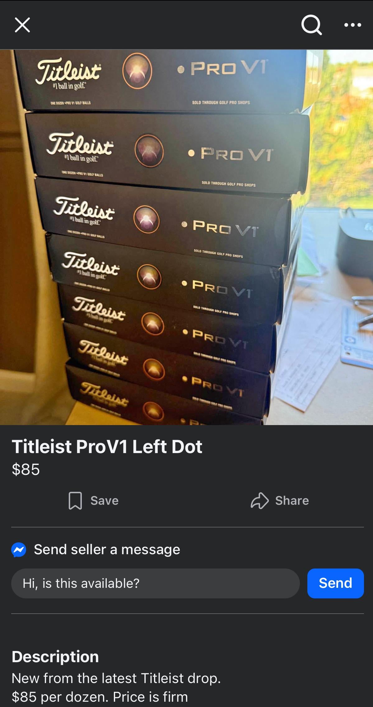 Sometimes I browse around on marketplace and found someone selling the brand new ProV1 Left Dot golf balls for $85 a box!! These balls are $55 online and are on a limited run and this person decided to buy a bunch and then charge crazy prices online.