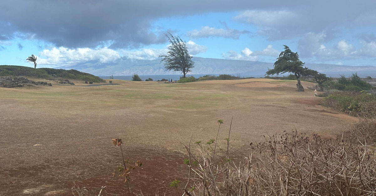 Yesterday, some distressing photos of the unwatered golf courses at Kapalua Resort on the island of Maui circulated on social media. Take a look: