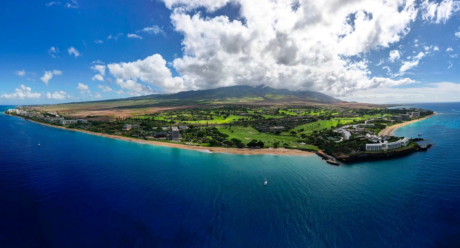 An aerial view of the Kaanapali coast and its golf courses.