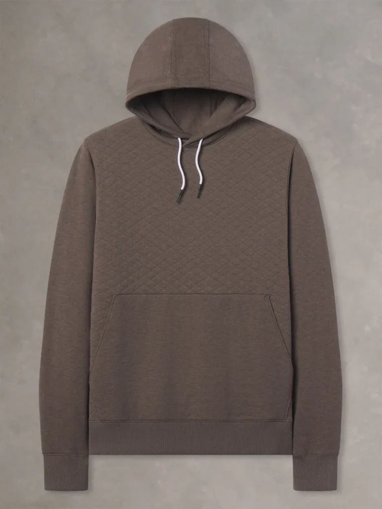 What stands out immediately is the quilted pattern; it looks premium and elevated in a way that most hoodies just don’t. This isn’t your standard gym hoodie masquerading as golf wear. It’s legitimately stylish enough to wear to a nice dinner, but comfortable and unrestricted enough to swing a club in.