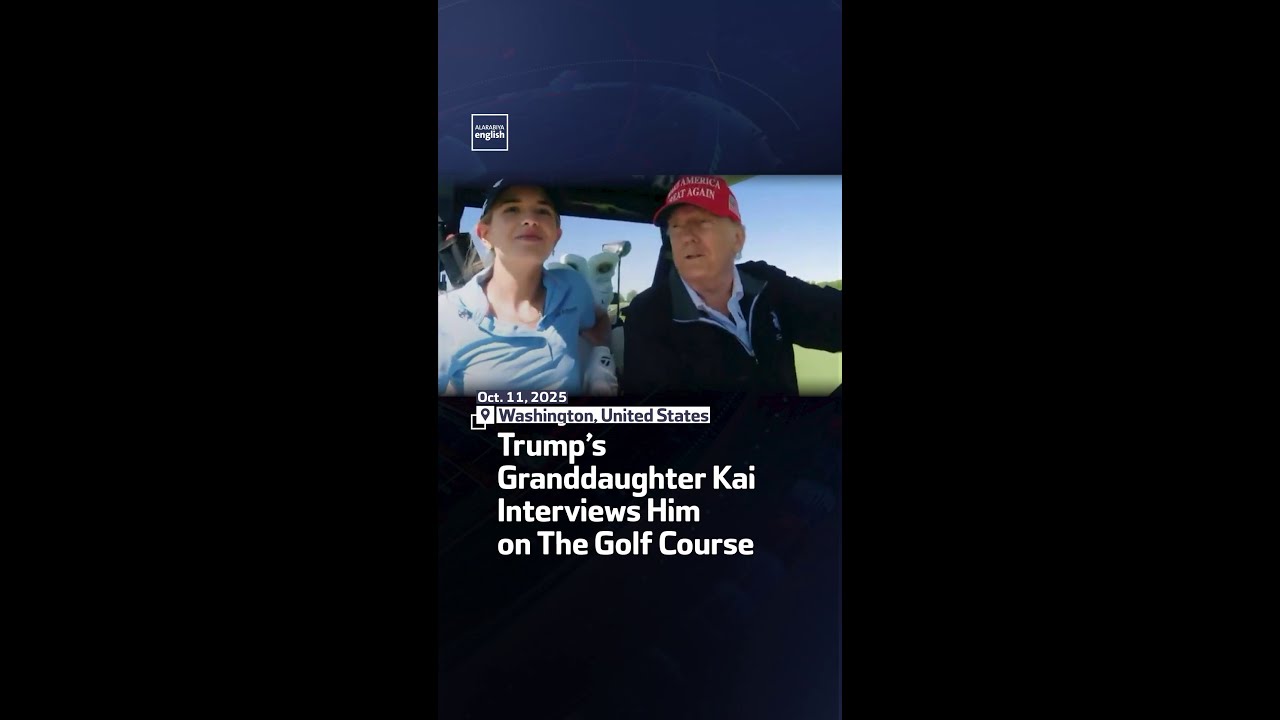 US President Donald Trump shares a moment with his granddaughter Kai Madison Trump during an informal interview on the golf course.