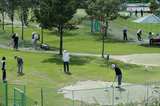 Golf enthusiasts play golf at a golf course course in Daegu on June 25. [NEWS1]