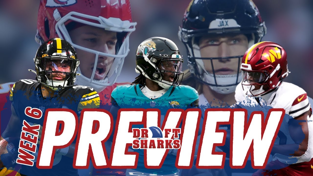 Is Joe Flacco about to save the Bengals offense? And are we finally on the verge of a big Brian Thomas Jr. bounceback? It’s week six and we’re talking all that, plus Bill Crosky merit, Rico D, Terry McLaren’s return, and more. An allnew Draft Sharks podcast starts right now. Hey, it’s the Draft Sharks. Matt Sha and Jared Small of DraftSharks.com here to help you set your lineups and improve your teams for week six of the fantasy football season and let’s hope beyond. Jared, we’re going to start this episode talking about touchdown regression. Instead of your usual usage takeaways article, we got to dig into TD totals this week. So, why don’t you just start by telling us what you went in looking for when you were working on this? any general observations and then we can get into some like individual team results and perhaps some players that that might be in for a production boost. Yeah, this was just an idea that popped into my head as I was working through uh projections on Monday. What made me think about it is looking at the 49ers who have scored all 10 of their offensive touchdowns so far via the pass. So, you know, I want I’m always looking for ways to, you know, find like edges that maybe other people aren’t thinking about. And I think, you know, touchdowns is a good way to do that because we know they’re volatile from week to week, even from season to season. So what I did is I looked at how each offense has scored their touchdown so far in terms of via the pass or via the run. Historically we see this number be around 60 to 70% of touchdowns coming via the pass. And like 10 years ago that number was much higher from passing touchdowns. I think just in general the NFL is more of a passing league like you know in the 2015 2018 like that kind of that range. Things have shifted more towards the run lately. You know this year so far 63.6% 6% of touchdowns have come via the pass. And I think, you know, in general, we’d expect all offenses to kind of regress back towards that number. Now, not every offense is the same, of course. Think about the Chiefs offense versus the Eagles offense. We will obviously expect the Chiefs offense to score a higher percentage of their offensive touchdowns via the pass, where the Eagles will be a team that’s going to, you know, score more of their offensive touchdowns via the run. So what I did is I I just looked at how these teams have scored so far, percentage of touchdowns via the pass versus run, and then compared that to how they’re calling plays when they get near the end zone. So what’s their pass rate inside the 10 yard line? What’s their pass rate inside the 20 yardd line? And just tried to look for teams that just don’t make sense so far. You know, teams that are scoring a lot via the pass, but are actually running more near the end zone and vice versa. Just to find teams and players that I think we could expect to score more or fewer touchdowns going forward. And of course, the entire NFL season is really a small sample of data. It’s only 17 games. So, it’s possible for a team to have good luck or, you know, bad luck throughout the year. But the point here is we’re looking for outlier results, things that that might signal a team either um doing less of what has gotten it to where it is right now going forward or a team that’s set for just like better luck and is about to deliver more touchdowns. So, let’s go pass first. Um, what did you find as far as some teams that look like they’re on the verge of throwing more touchdown passes? Yeah, we’ll start with the Jags who should start throwing more touchdown passes. Now, the Jags in general have been a passle leaning offense this season. They’ve been particularly passing inside the 10 yard line. The the Jags are second in pass rate inside the 10 yardd line. They’re 18th in pass rate inside the 20 yardd line. So, kind of, you know, in the middle of the pack there, but despite that, they’re just 26th in their share of offensive touchdowns that have come via the pass. So, we would expect more passing touchdowns here. And Trevor Lawrence has had every opportunity to throw more passing touchdowns this season. He is fourth in the NFL in red zone pass attempts. He’s third in pass attempts inside the 10 yard line. He’s ninth in passes into the end zone, but he’s just tied for 19th in actual passing touchdowns so far. we’d expect more passing touchdowns. The issue here is that Trevor Lawrence, for whatever reason, and we could dig into that, has been a below average touchdown rate guy throughout his career. His career touchdown rate heading into the season was just 3.4%. That’s like almost a full percentage point below league average. And this year so far, it’s at 3.6%. So, like with Lawrence, to me, just how much do you believe in him as a player? Because the opportunity is there for him to to score more passing touchdowns going forward. Maybe that makes him a buy. Um, but again, we have a pretty long track record now of Lawrence kind of underwhelming in terms of touchdown production. Yeah, what I would say is I don’t believe that he’s going to be a great player at any point. I do think that he has the potential to be better than he has been to this point this season, especially when you add in that they’ve got a new coach this year. It’s reasonable for the offense to take a little time to figure things out, especially with, you know, not only a secondyear wide receiver being the number one, Brian Thomas, but also a rookie Travis Hunter trying to work into being the number two wide receiver while playing on defense. So, there are just a lot of different challenges here that make it sensible for the Jaguars to take a little bit of time to round into shape. But, they have lots of talent on offense. We don’t need Trevor Lawrence to be stellar to deliver fantasy points here. You know, I I think he’s more worth rostering now than he was