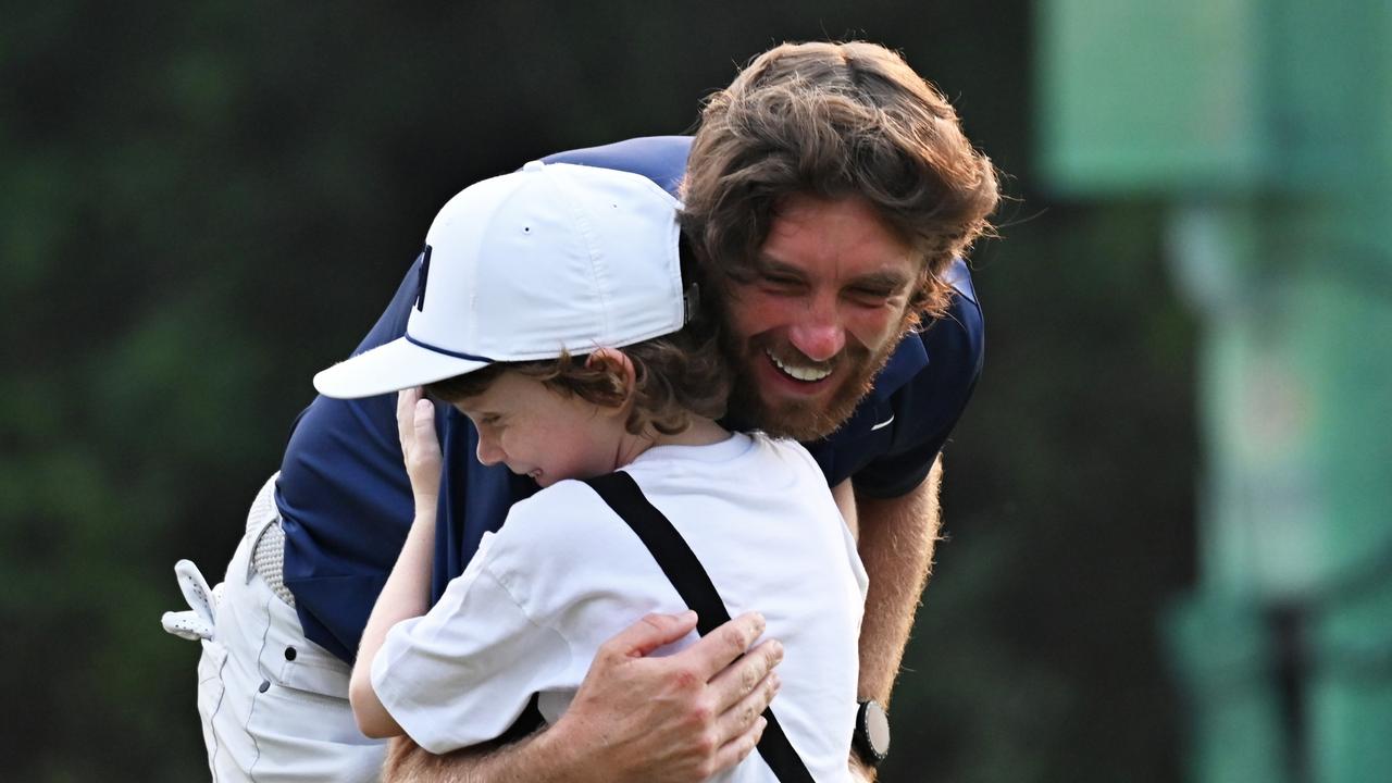 After tapping in for par at the last, the popular Fleetwood enjoyed a magical moment when his seven-year-old son Frankie charged across the green to hug his father to huge cheers from the packed galleries.
