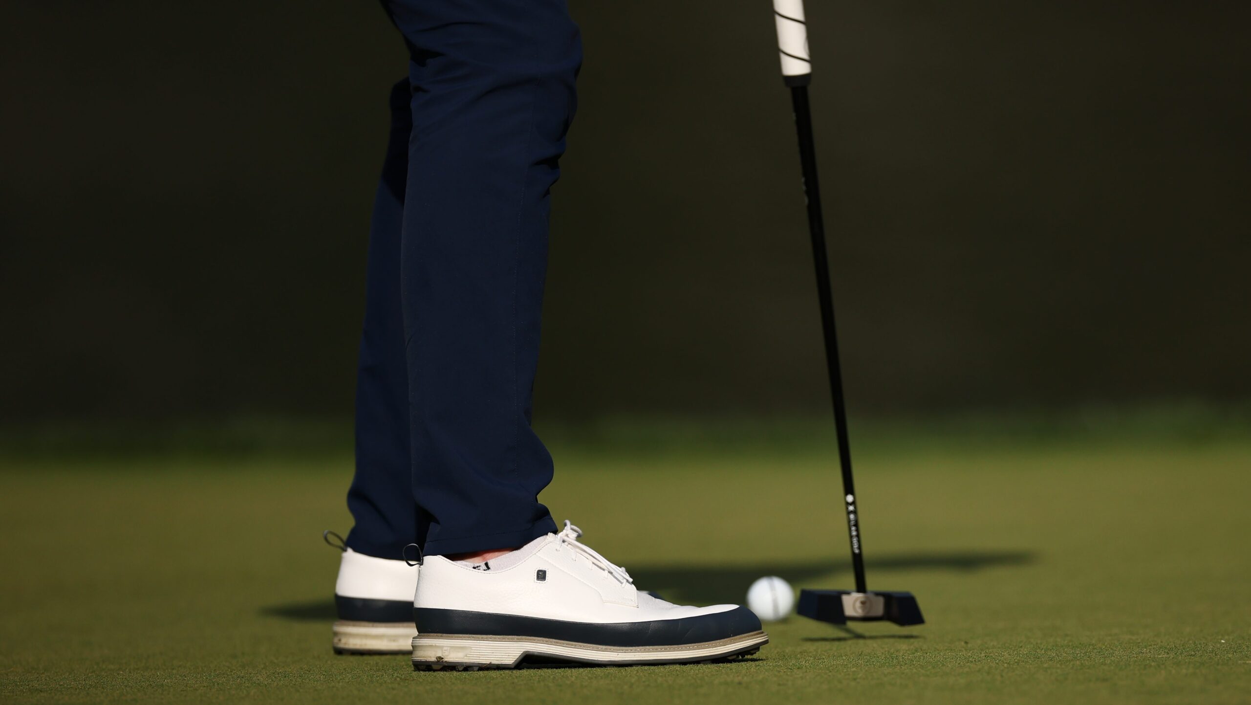 A detailed view of the shoes worn by Will Zalatoris of the United States as he plays the 17t hole during the first round of the PGA Championship at Quail Hollow Country Club on May 15, 2025.
