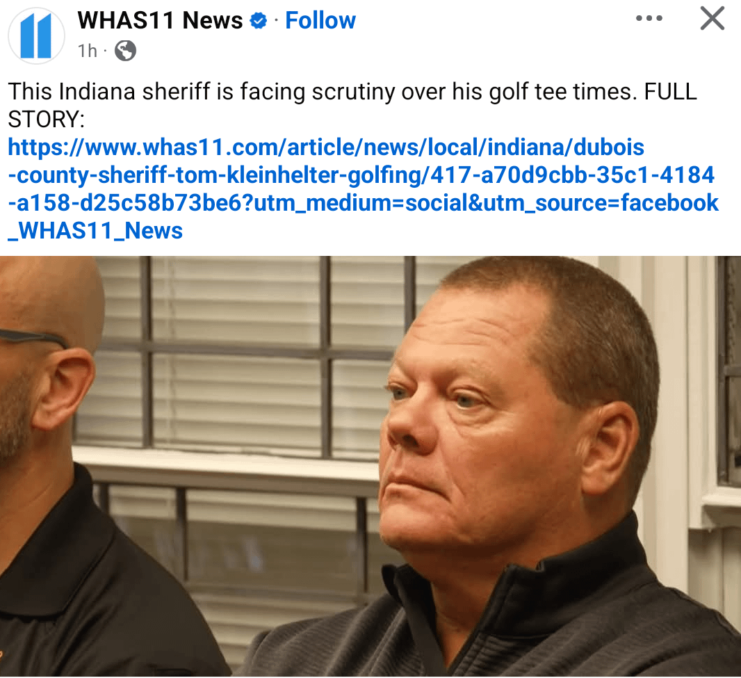 Some concerned about Indiana sheriff's time on the golf course | whas11.com https://share.google/mQEshvaOPqjbpmzLx