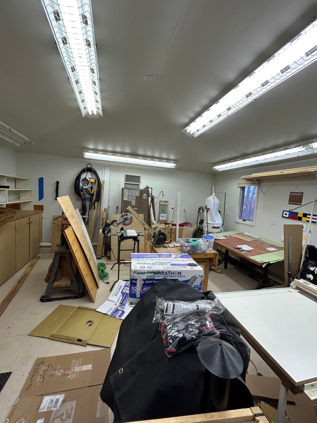 Looks like a nice woodworking shop. I’d wall off a section so you can still build things and golf on a smaller portion