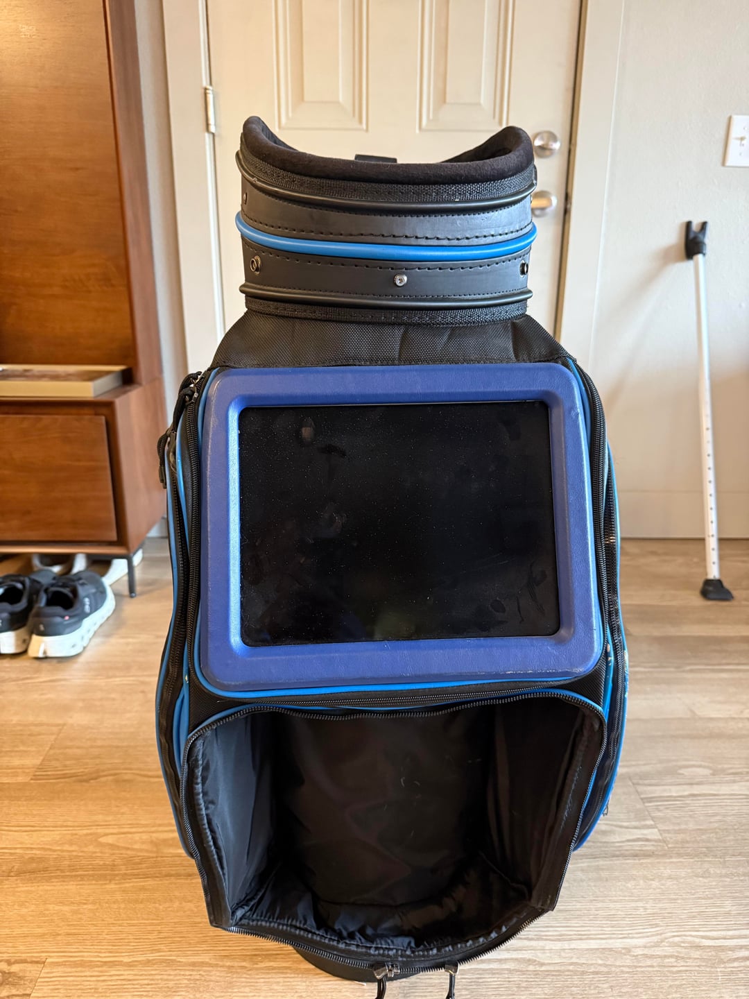 It’s to display ads. John Daly had a bag like this. [Here is a picture](https://www.alamy.com/the-golf-bag-of-john-daly-has-a-built-in-video-screen-that-runs-advertisements-seen-on-the-spyglass-hill-course-during-the-second-round-of-the-pebble-beach-national-pro-am-golf-tournament-friday-feb-11-2011-in-pebble-beach-calif-ap-photoben-margot-image523904434.html)