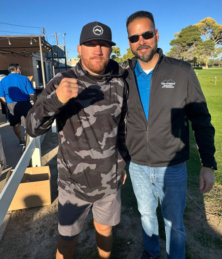 Photo Courtesy City of Safford: Justin Gaethje poses with Safford Assistant City Manager Eric Bejarano.