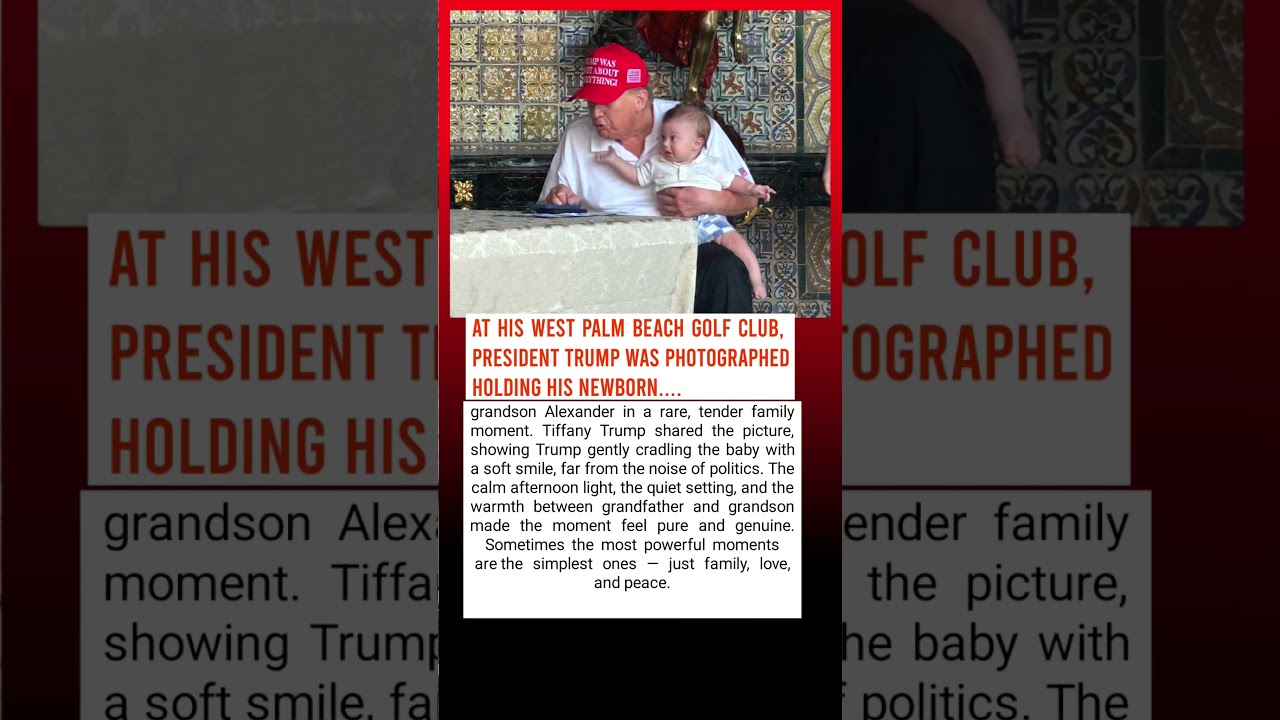 At his West Palm Beach golf club, President Trump was photographed holding his newborn grandson Alexander in a rare, tender family moment. Tiffany Trump shared the picture, showing Trump gently cradling the baby with a soft smile, far from the noise of politics. The calm afternoon light, the quiet setting, and the warmth between grandfather and grandson made the moment feel pure and genuine. Sometimes the most powerful moments are the simplest ones — just family, love, and peace.
