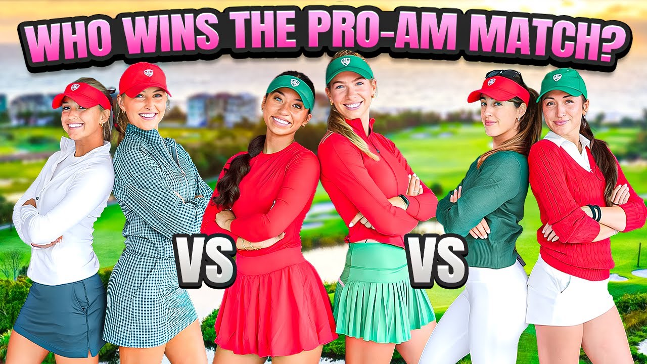 [Music] Nice. Oh my gosh. Is that in? Today we are doing our first ever proam. We have three teams here. One pro and one amateur is on each team. This is a fun format. How does it work? We’re going to be doing a proam format. It is groups of two. The AMS are going to play the first hole and the pros are going to play the second hole. We’re going to play eight holes like that alternating. And then we get to the end, the ninth hole, we’re going to play alternate shot with our teammate. That’s fun. And total score wins. It’ll be stroke play. So technically each hole it’s just a three ball and you’re really relying on your partner because they’re the only ones playing in that hole. So anything can happen. What is up guys? My name is Sabrina and Dulfo and I’m Cara Kilby and we are team brunette and I feel we’ve been a team before and we didn’t really do that good. No. So I feel like this has to be our redemption. It’s redemption time. We have to win. I’m Kayn Henderson. I’m Sophia Warren. And we are team happy. Okay. I feel like we’re always laughing. But today, I have a feeling that we’re going to go so crazy low that everyone’s going to I feel so good about this. Guys, my name’s Abby Daniel. I’m Phoebe Carlos. And we are the Slayers and we just met today and we’re going to absolutely slay the competition. They stay in a chips. Here we have a kind of interesting punishment. This is a fun punishment. So, we’re actually staying on the golf course as well, the 18th hole. So, we’re going to place their golf ball at nighttime around like 140 yards. And if they don’t make par from there, they both have to go jump in the ocean at nighttime. And the ocean’s cold. It’s freezing. So like the thing is, but the thing is if they both make par on the hole, they don’t have to jump in the ocean. But if they don’t make par, ocean time redemption, but it’s individual. So if like one person makes par and one person doesn’t, then that one person still has to go jump in. Yeah. No, it’s it’s and it really shows. So we’re staying at the Palmetto Dunes Resort. This is the Palmetto Dunes golf course, but everything is so close. So golf course in the backyard and then the beach is right there, too. So you’ll see just how close everything is. We are starting on hole one. The amateurs will kick it off. Yeah. Yeah. So yeah, you Phoebe and I. So ready. Go. Okay. Yeah. You just got it. Perfect. Slayers. The Slayers. That’s Slayers. All right, you guys. We have a beautiful little This is part four, right? Yeah. Surely this is a part four. Um it it looks very inviting just straight away. So that’s like what we’re going to do. So inviting. That middle of the fairway looks so inviting. No, it’s calling me. She’s calling and I’m about to pick up. Yeah, that’s perfect. No, like that’s so perfect, baby. Let’s see if it went further than 200 yards. It did. Oh, also today’s Christmas edition since we’re near Christmas, in case you couldn’t tell. Feeling good with the driver. Right down Broadway following Phoebe. Oh yeah. Wow. Wow. Okay. Ballers. Almost done. The AMS are doing well. Plot twist. AMS are the pros. I just got to top us off here. Come on. First tea. The whole the whole clubhouse watches. I know. No. No. This is where I have to get arrogant. I have to get cocky. Come on. I’m so good. Perfect. Yeah. It’s a little left. It’s got to sit down a little. You think? Yeah. Yeah. Oh, that was Oh, it went so far. I mean, I hit it solid. It’s just a little left. And we are off. The Christmas edition episode 1 starts now. This is our second day in Hilton Head. I don’t know when we’re posting this, but yesterday we played Heron Point at Sea Pines. Well, you smoked that one. Let’s see. Is that me or is that Phoebe? I think you’re right there. Oh, nice. Okay, fairway. Love that. It’s sneaky. Literally, it’s so funny. Everybody here’s like, “So, what is this? Is this a team?” But also, is it Christmas? Yes, it is. Yes, it’s it’s both. It’s both, actually. And team slayers are are gonna pull through. I was like, “It’s totally fine.” Until I saw pit and then I was like, “Yeah, 117.” Okay. Definitely got some wind in the face. I’d say it’s right in my face, actually. All right. Here we go. Um, I’m going to play this 125. I’m going to actually choke up on an eight. Okay. And hit that. Like that’s like my If I choke up on it, it could be like 130. Yeah, I like that. So, we’re going to do that. sit. Oh, good. My depth perception is off. Nice. Okay, guys. I have 119 yard. There’s a little wind in my face, actually. I don’t know. I’m just going to honestly just hit a full shot here. That sounds perfect. And just keep my back to the target longer. Ah, just sit. Just sit, short, it’s fine. That’s fine. I mean, honestly, place to miss. The slope should take it a little bit. Yeah, it’s kind of that kind of guess where it’s sitting up a bit. Okay. So, a tip is if you put the club down and the ball kind of bounces like that, that’s a flyer. That’s how you can tell. If it if it doesn’t do anything, it’s going to come out muffy and low. Write that down. All right. So, I’m gonna aim right at Jordan with a little 54. I don’t know. Anywhere on the the front part of that green is perfect. I love it. Yep. You’re dialed. You got it. I That’s so perfect. Like, it’s right on the pin. Yeah. Oh, yeah. Sit. Sit. Sit. Sit. Sit. Come down. That’s like such a big bounce. That’s fine, though. Like, it’s good. That’s a huge bounce. It’s still like a shot though. I mean, you did what we said. These greens look chill. They don’t look like they’re going to roll out of time. Okay, here we go. I have a 56. I’m just trying to make a par. So good. Okay. Awesome. Thank you. Switchy switch. I’m just going to tap mine in. Move out of her way. It’s a one-footer. Let me just get this in