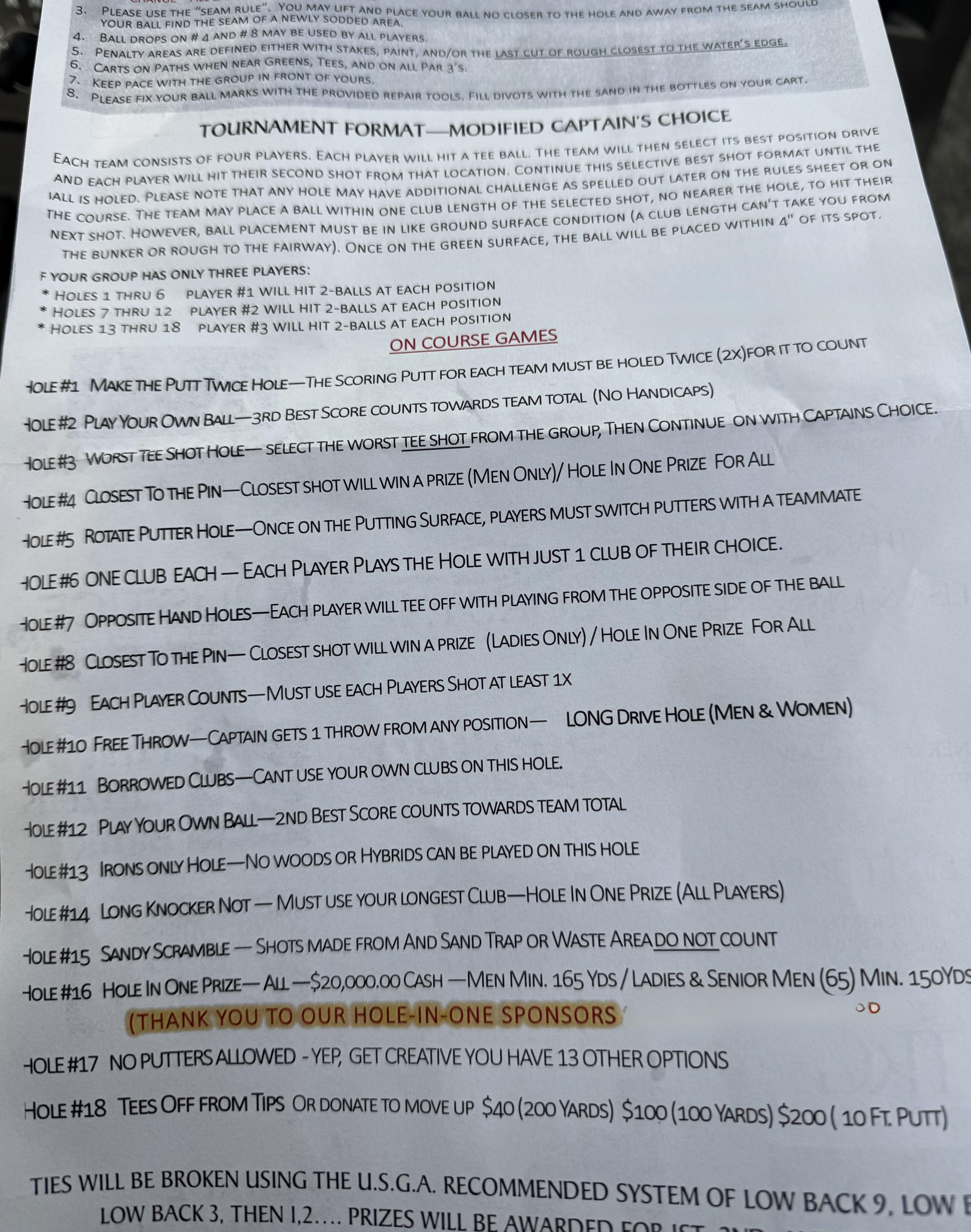 Playing 4 different sets of tees depending on age/sex. Thank heavens our scorekeeper was a CPA.