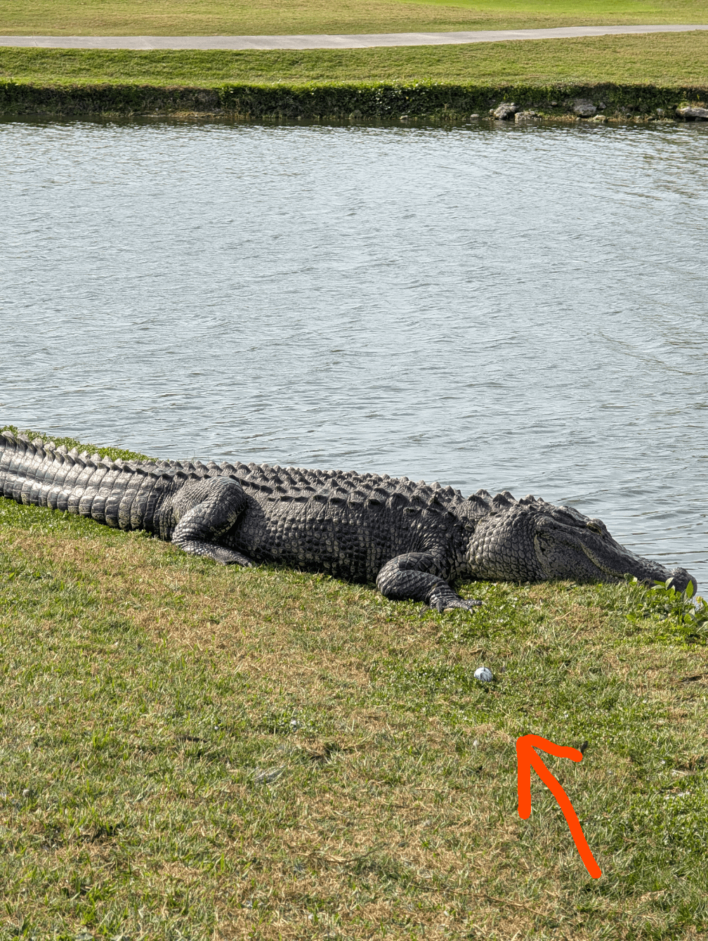 It blows my mind you golfers in the south have this as a hazard. Up here in Michigan we got the geese and while they were hand crafted by Satan I never have to worry about my arm getting ripped off by them with like a gator