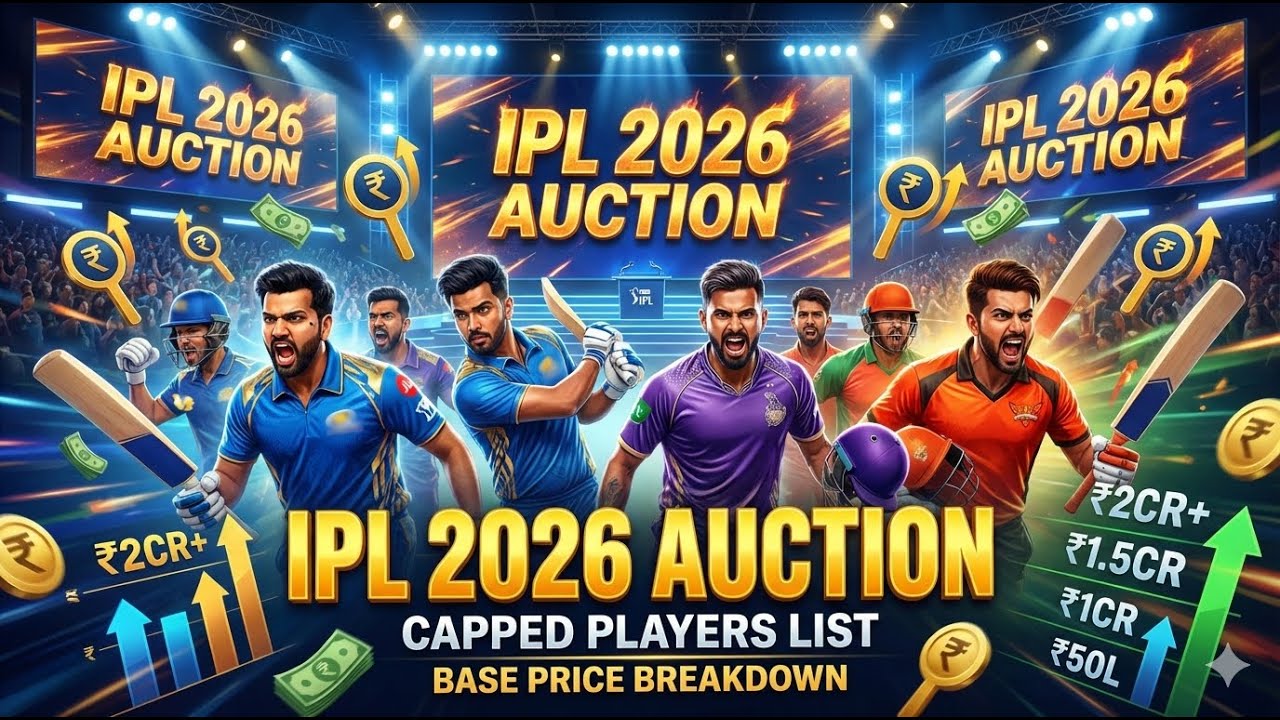इस वीडियो में आपको मिलेगी IPL 2026 Auction की Complete Players List, जिसमें शामिल हैं सभी Capped खिलाड़ी, उनकी Base Price (लाखों में) के साथ 💰