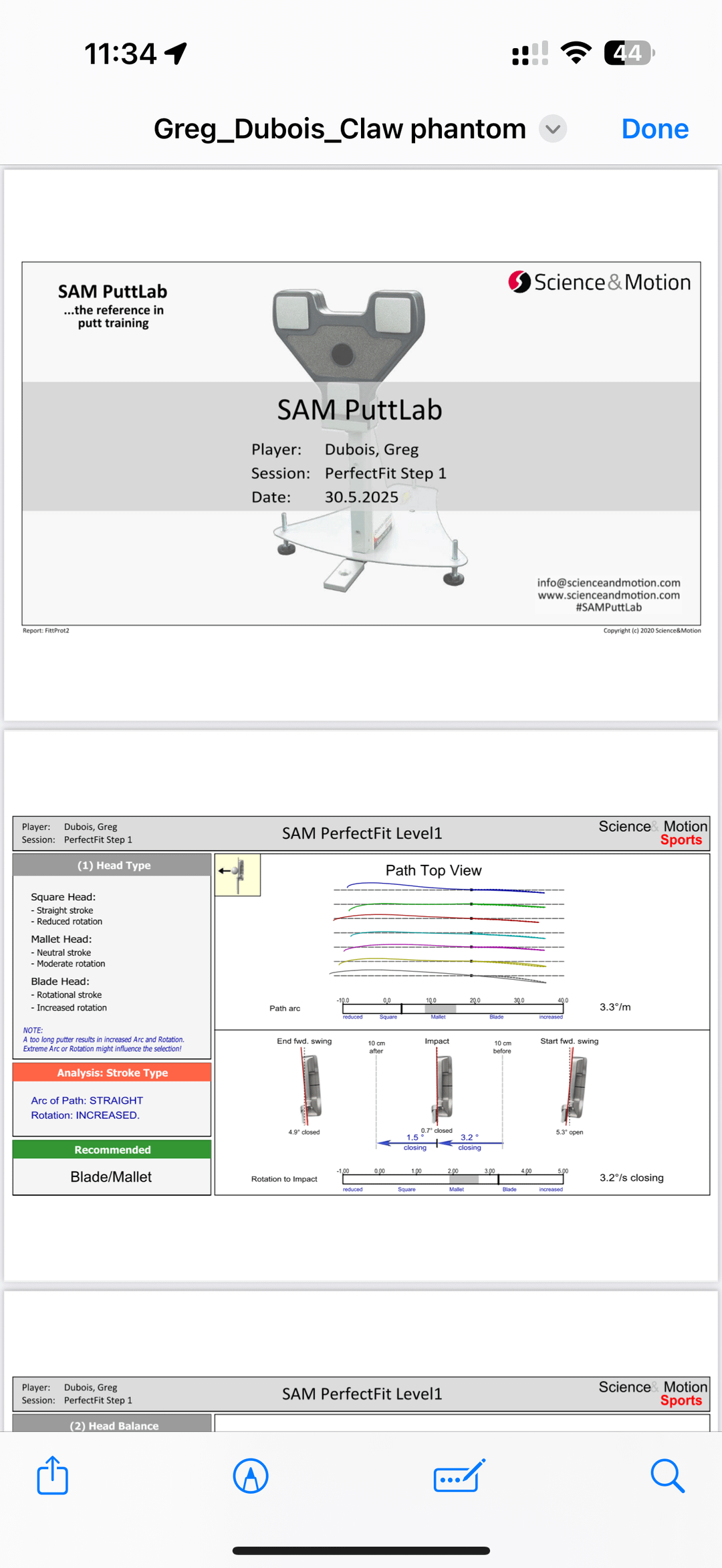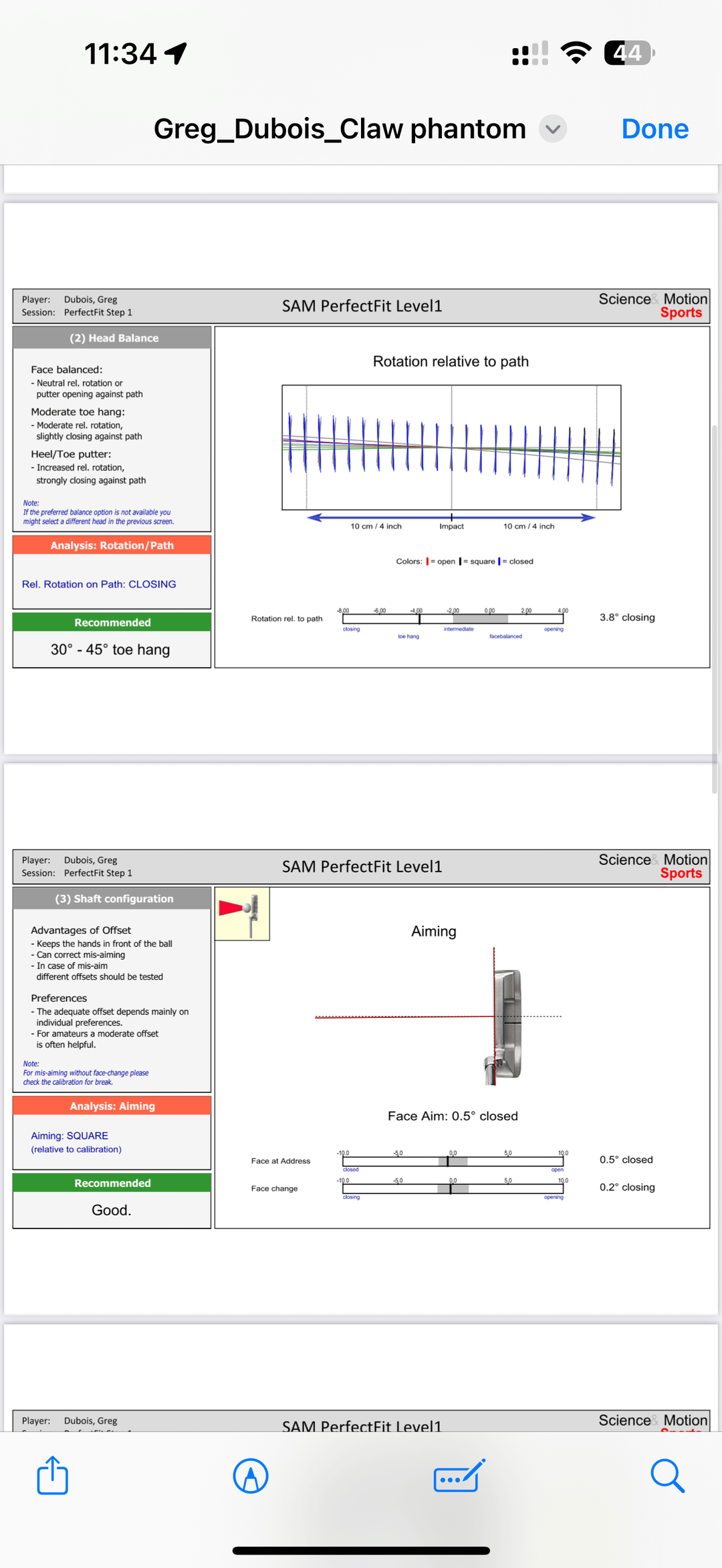 Hi all. I recently did a SAM put lab analysis, the fitter there was pretty clueless and had no feedback, just the emailed results once I left. can anyone interpret this for me? I notice within the 10cm impact zone I have over rotation and a lot of face closures, so why would the recommendation be a 30-45° toe hang, wouldnt I want minimal?