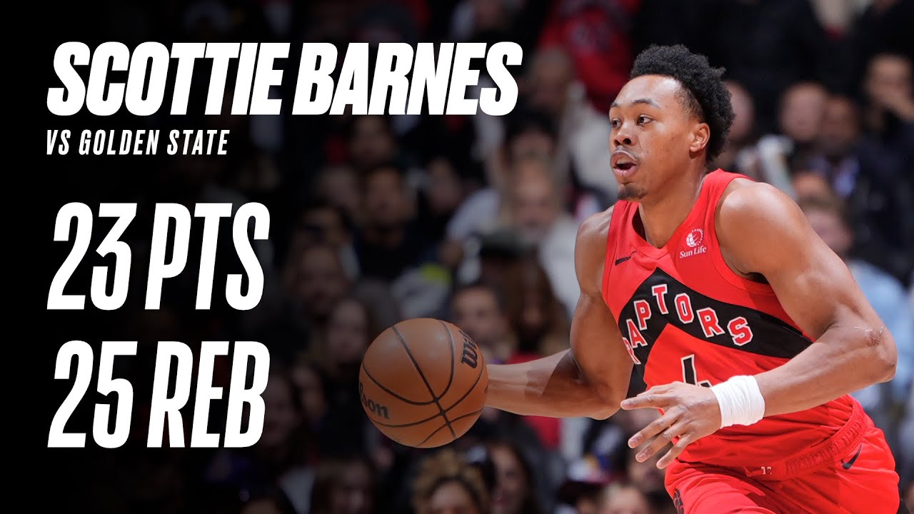 Scottie Barnes tallied 23 PTS, 25 REB, and 10 AST in the @TorontoRaptors comeback overtime win over the Golden State Warriors!