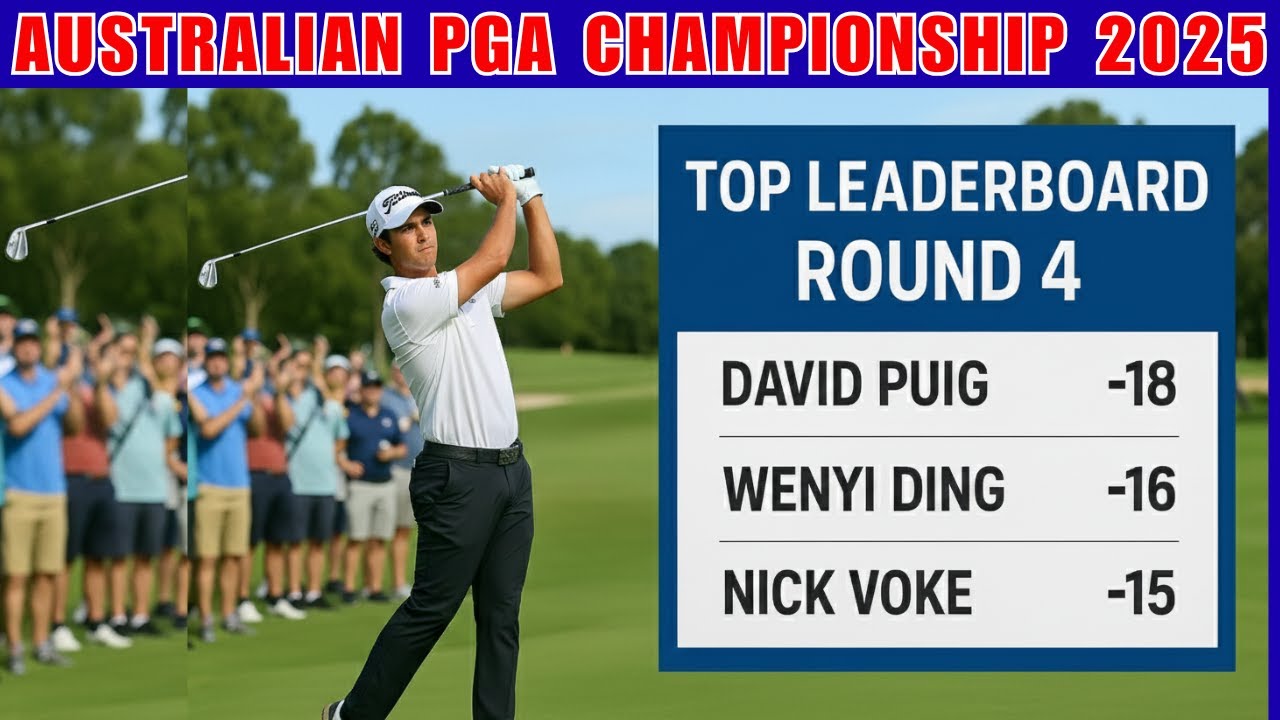 #golf #pgalivegolf .Experience the excitement of Round 4 – BMW Australian PGA Championship 2025 live from Royal Queensland Golf Club. David Puig leads the leaderboard at -18, with Wenyi Ding (-16) and Nick Voke (-15) chasing hard. Watch the final-round pressure, dramatic shots, clutch moments, and the crowning of the 2025 champion.