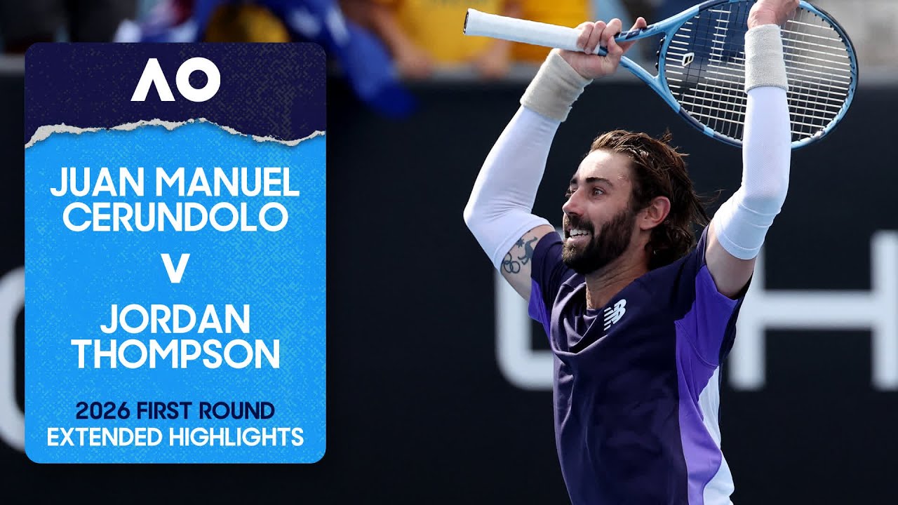 Watch the extended highlights of Juan Manuel Cerundolo v Jordan Thompson in the first round of the Australian Open 2026.