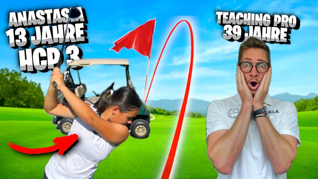 Golfprofi Philipp tritt über 18 Loch im Lochwettspiel gegen die erst 13-jährige U14-Staatsmeisterin Anastasia an.