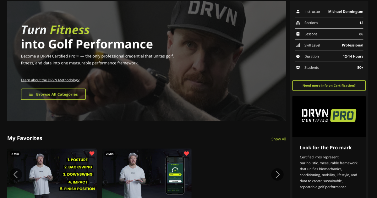 The DRVN Certified Pro certification is available here: https://pro.drvngolf.com/