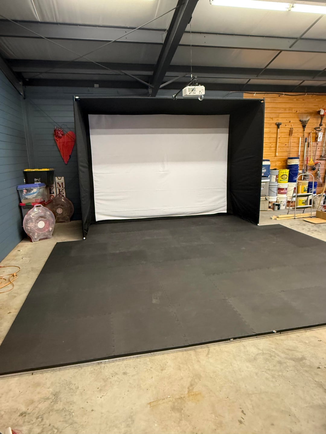Can you take a picture from the outside? I’m considering building a detached garage and putting a sim inside it similar to this. What was your budget and actual cost if you don’t mind my asking?
