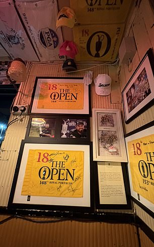 The ceiling is papered with flags, hats and caddie bibs from many of the world’s greatest players. It was also here that Lowry arrived after his victory at Portrush in 2019 and toasted his triumph with the Claret Jug. Photos of Lowry hang in pride of place and you’ll also be able to see his hat and glove hanging from the ceiling in the Harbour Bar’s main saloon.