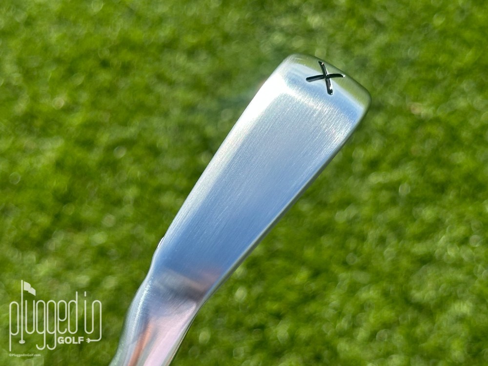 The differences from the previous generation are much more obvious in the bag.  Like the other GEN8 irons, the 0311 X has dual weighting.  The busier look of the weights is balanced by a nearly monochromatic color scheme and moderate “PXG” branding in the center of the head.  My favorite element is the “X” on the sole where the loft or club designation would normally be.