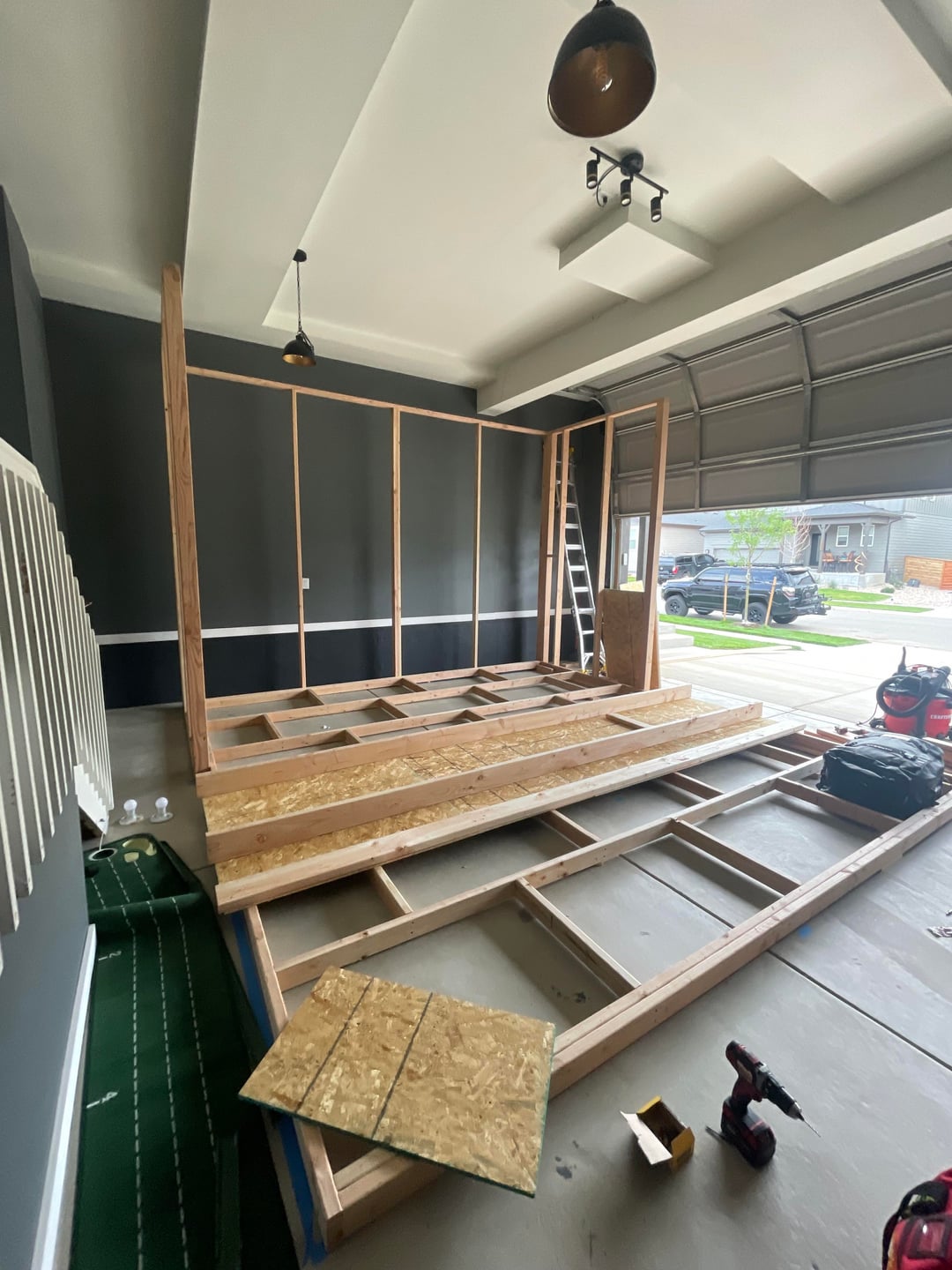 Why did you build across the narrow part of the garage, was it to have access to the overhead door?