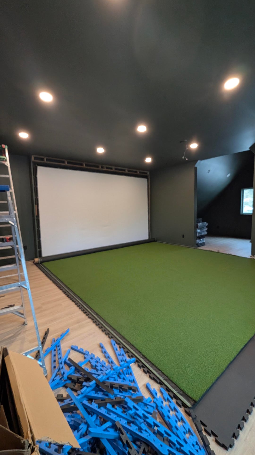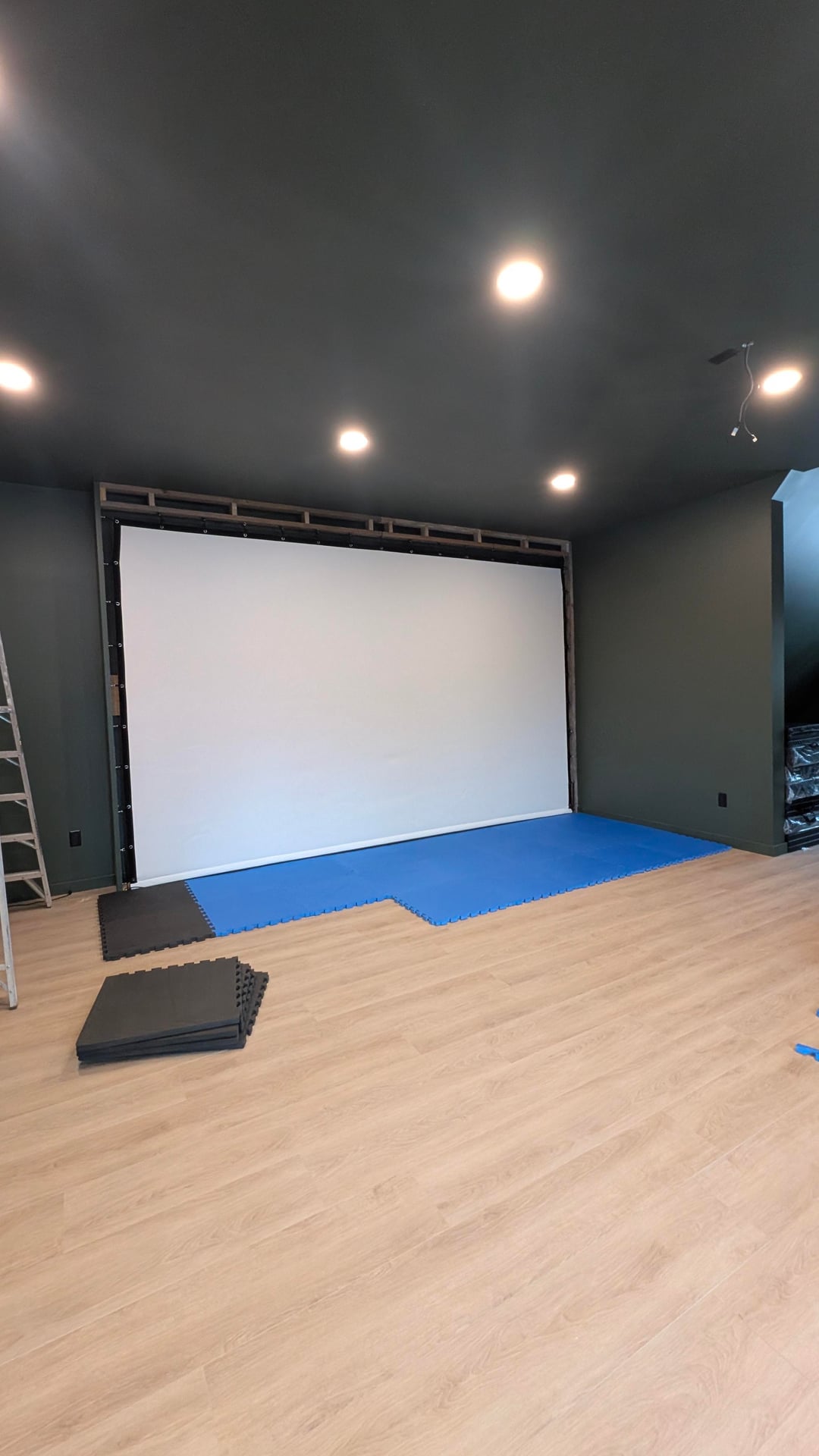 Long time coming but the fully custom Sim build has started. I will update as progress continues. Vtrack to be installed along with a Th671st. Screen is 14'8 x 9'2 (bullseye premium).