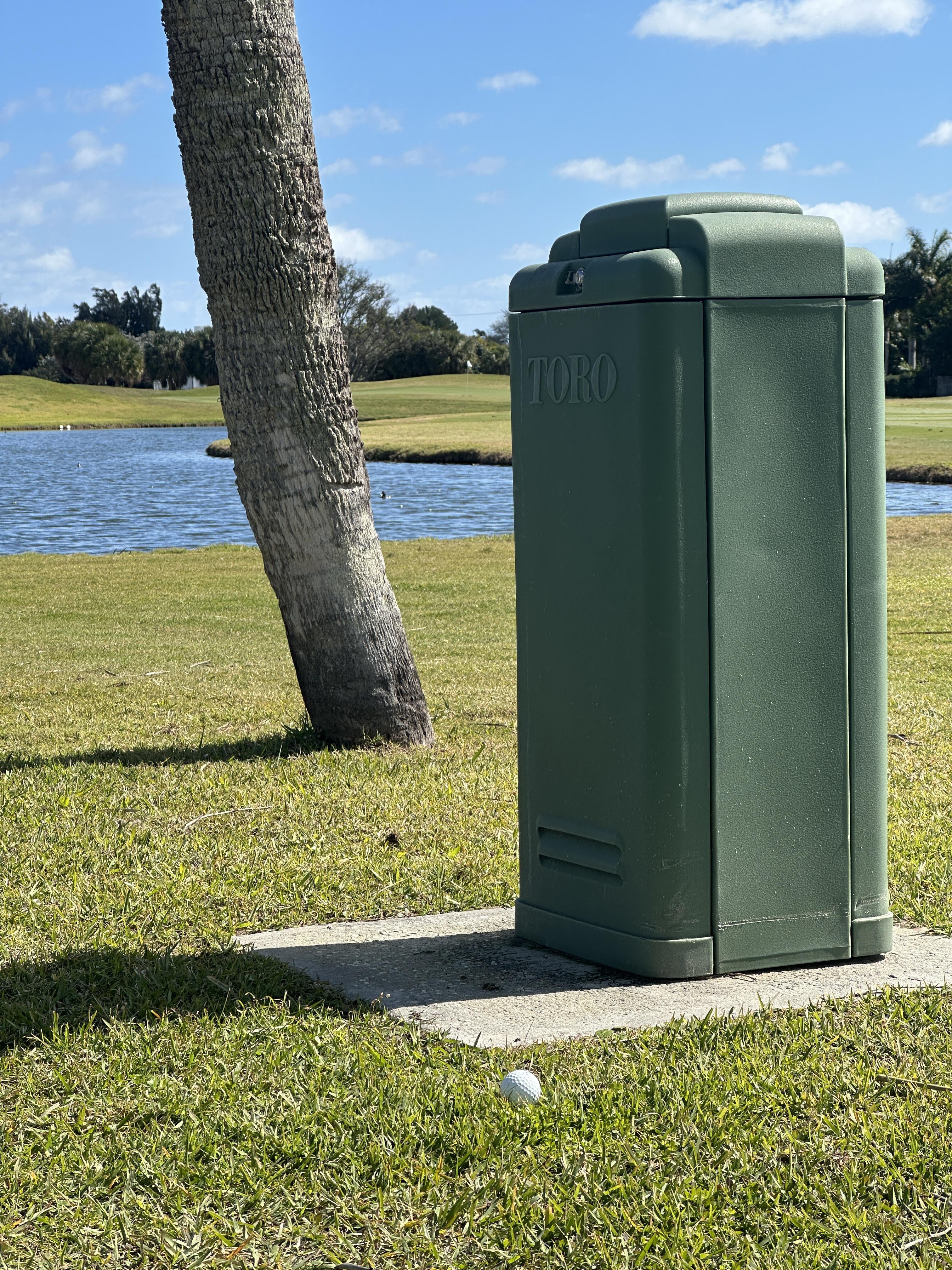 You get free relief from the electrical box. If the nearest point is to the left I’m cutting one over the water to the center of the green. If it’s to the right I’m going at the center of the green