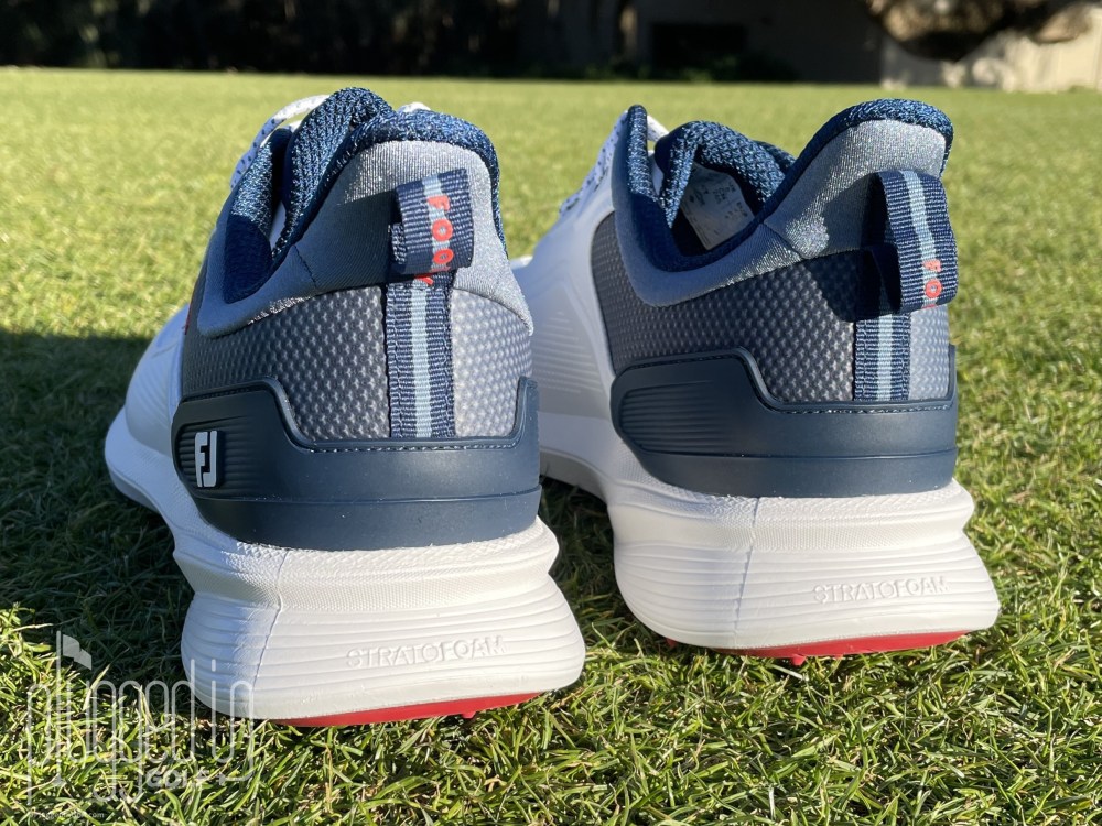 Turning to cushioning, the 2026 FootJoy Pro/SL lives in the middle ground between walking on pillows and walking barefoot. One of FootJoy’s points of emphasis with this shoe was making the heel softer, and that is apparent. There’s a StratoFOAM “Heel Crash Pad” which is noticeably softer than what’s under the ball of your foot. FootJoy also wrapped molded padding around the ankle collar. The Pro/SL does a good job taking the impact out of the walk without fully removing your connection to the ground.