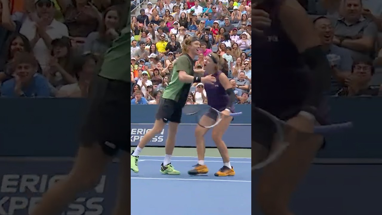 Absolute chaos on the court as Muchova/Rublev won this point against Errani/Vavassori in the quarterfinals of the 2025 US Open.