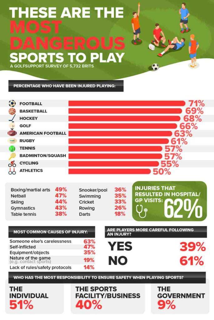 If it’s a survey of 5,732 British people I’d question the sample size that allows them to say 63% have been injured playing American Football or Ice Hockey (although it just says hockey, which in the UK would mean field hockey but the image looks like an ice hockey stick and puck).