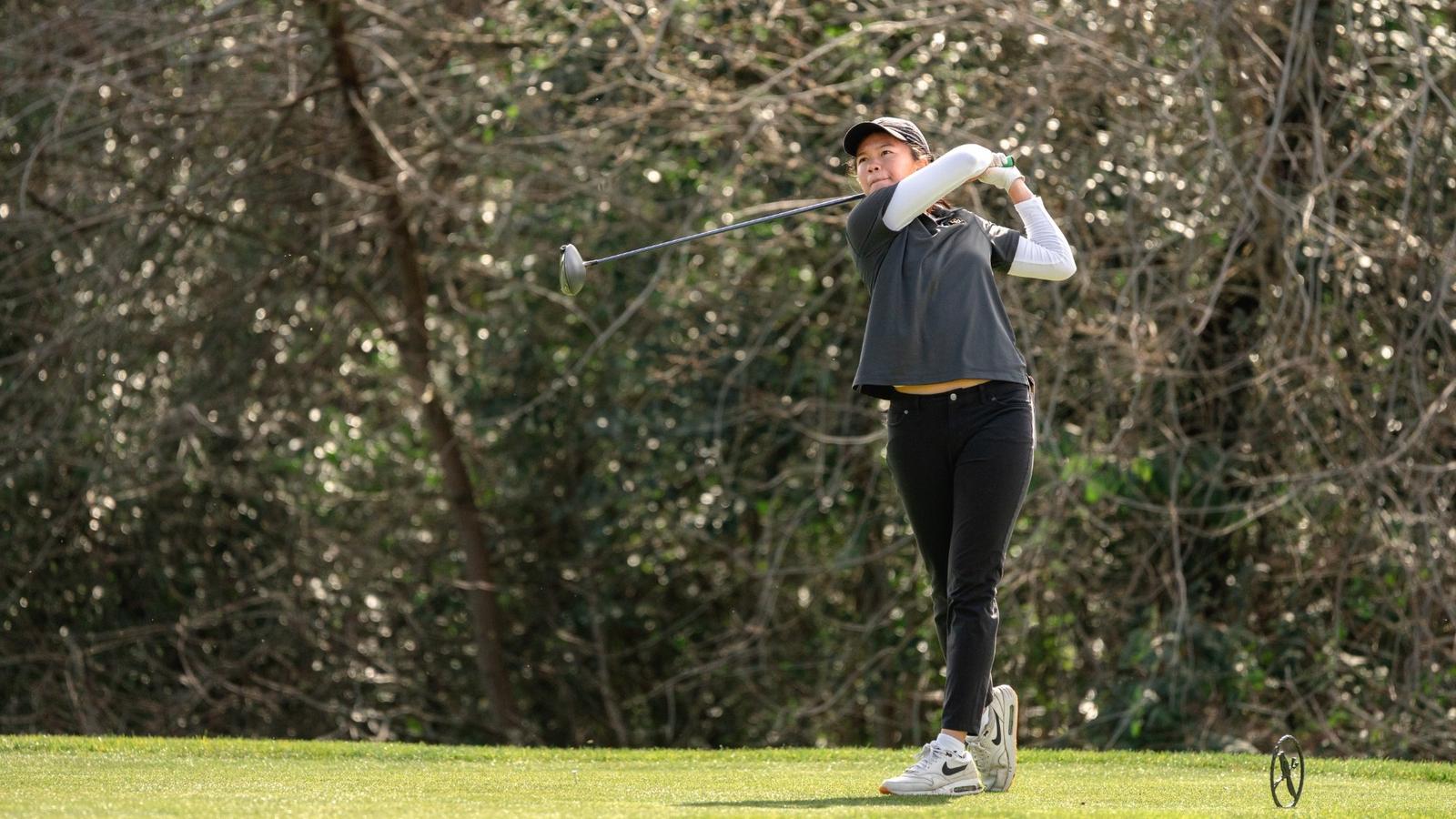 Third-year golfer Vanessa Ngo is tied for 20th at 4-over. She had her better of two rounds in the afternoon, logging an even-par 72, highlighted by an eagle on the 378-yard par-4 third.