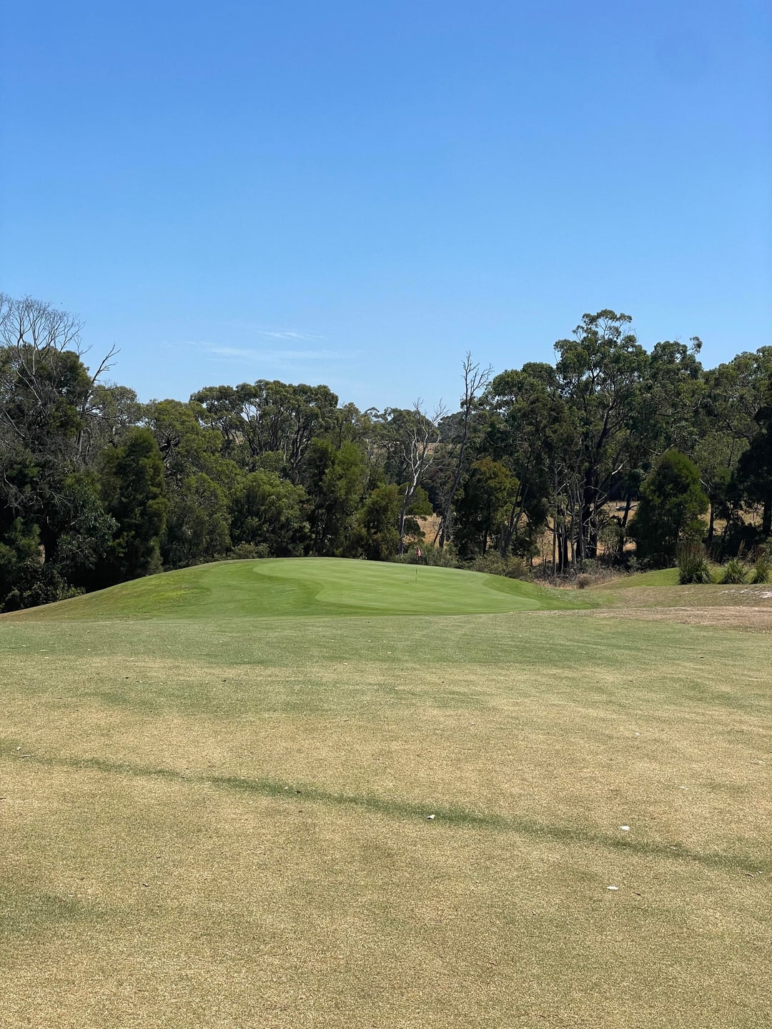 I know I can get it to the green here from how far my other clubs go on this hole, just never attempted it before as it’s quite narrow, blind because of the hill and also lady and right of the green are both horrible spot to be in as the green is elevated and sloped back to front. It’s usually and iron and then a wedge on anyway.