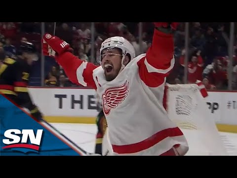 Watch as Detroit Red Wings captain Dylan Larkin shows off his speed to give himself a breakaway that he capitalizes on to give his team an early lead over the Vancouver Canucks.